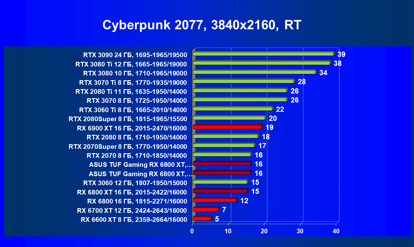 | 15 | RX 6800 XT 16 ГБ, 2015—2422/16000 | 11 | 161 | 150 000 |