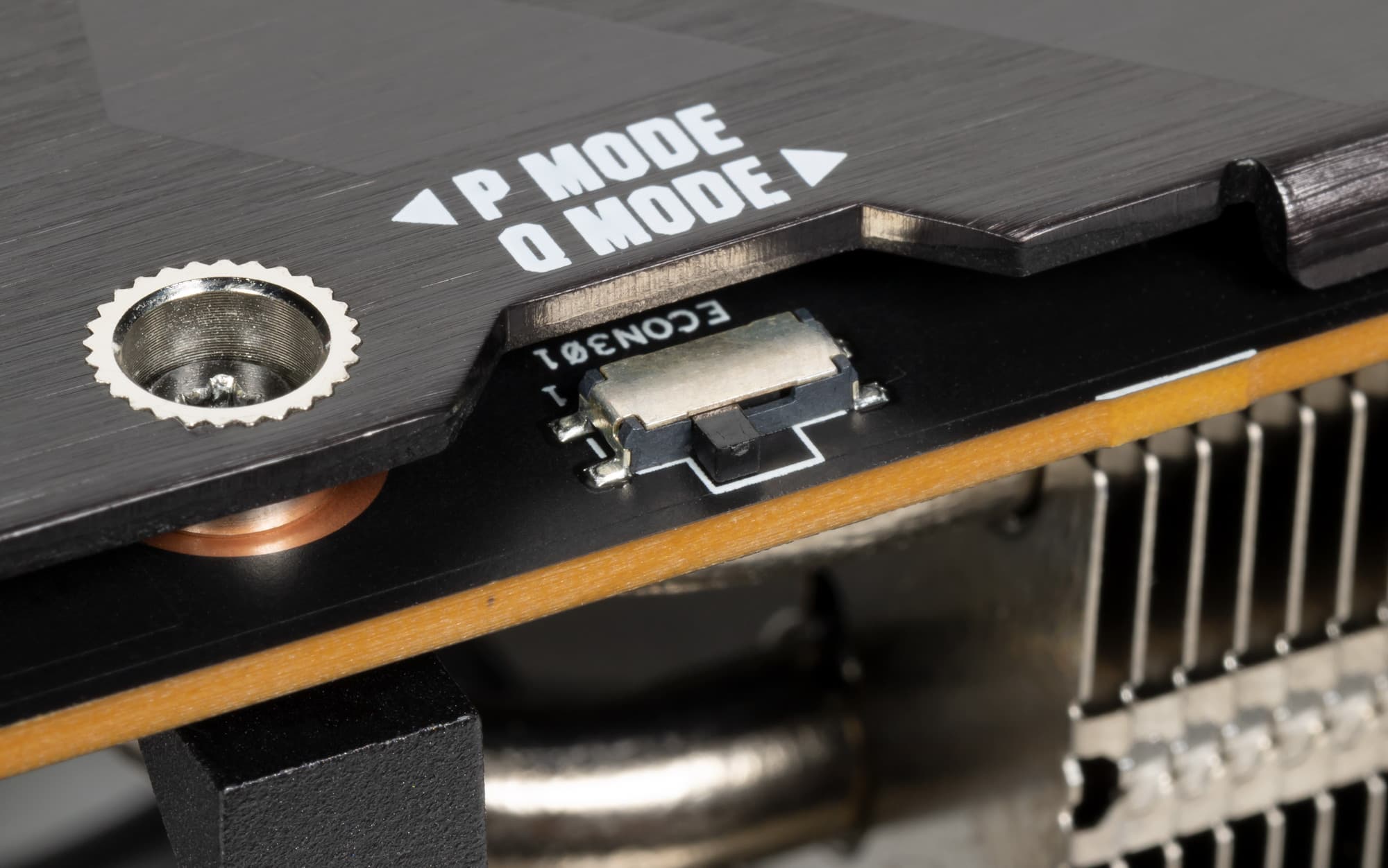 Позиции обозначены как P Mode (Performance) и Q Mode (Quiet). Разница заключается в разных кривых настройки работы вентиляторов (по частотам все почти идентично).