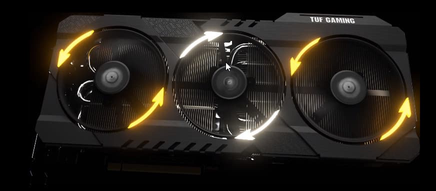 Поверх радиатора установлен кожух с тремя вентиляторами ∅95 мм типа Axial-tech, у которых концы лопастей соединены кольцом для более четкого направления потоков воздуха на радиатор. К тому же у среднего вентилятора на 2 лопасти больше, чем у крайних. При этом он вращается в противоположную сторону относительно крайних, что обеспечивает «эффект шестеренок», помогая бороться с турбулентностью потока воздуха.