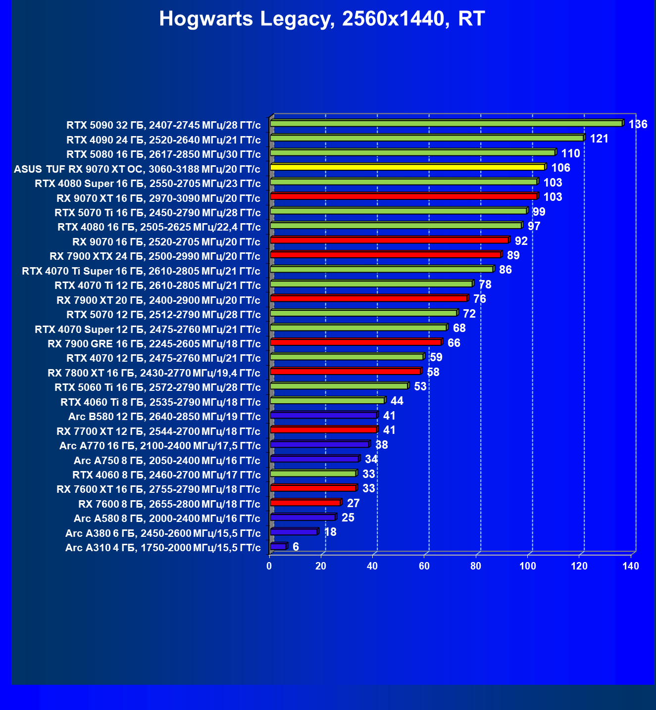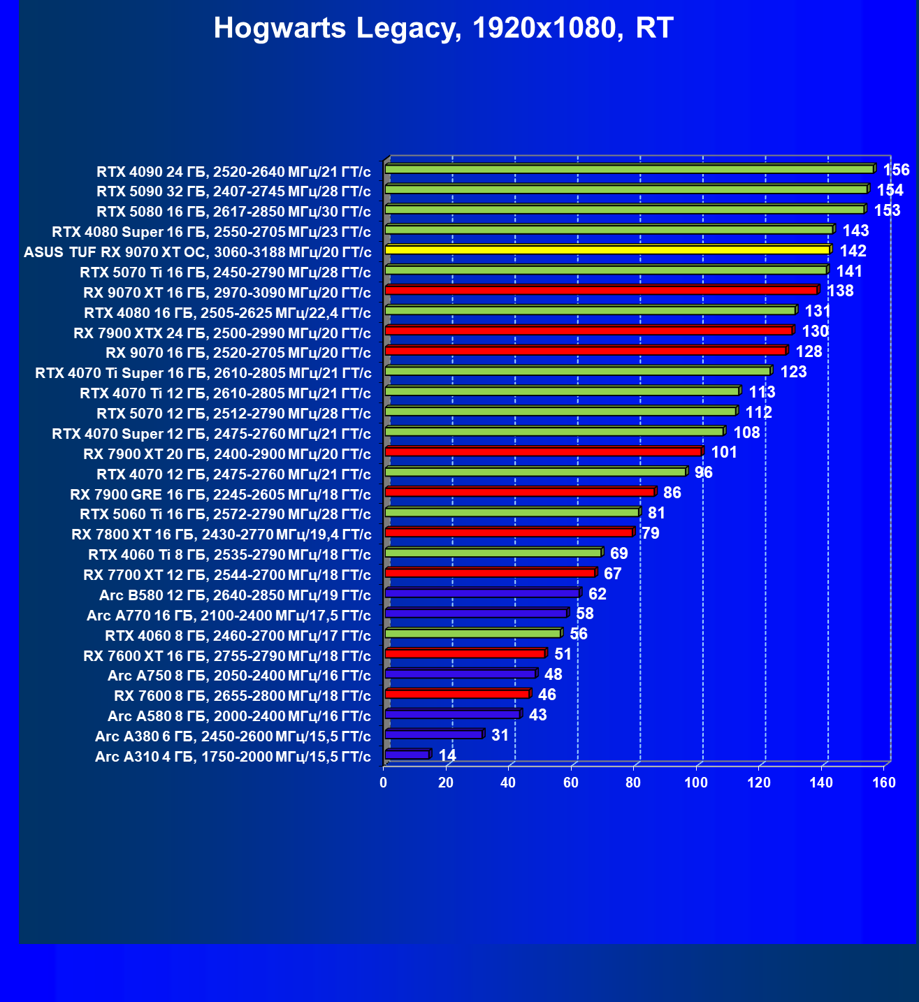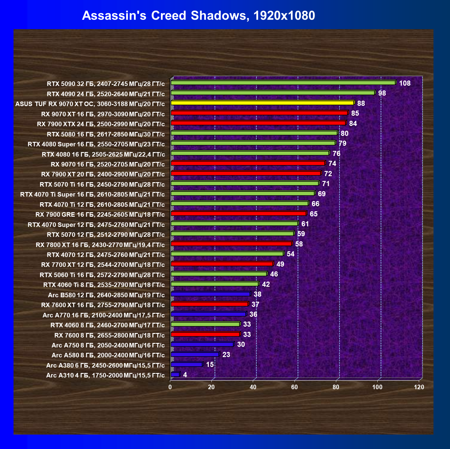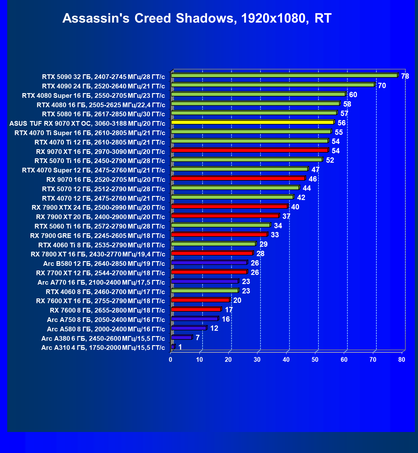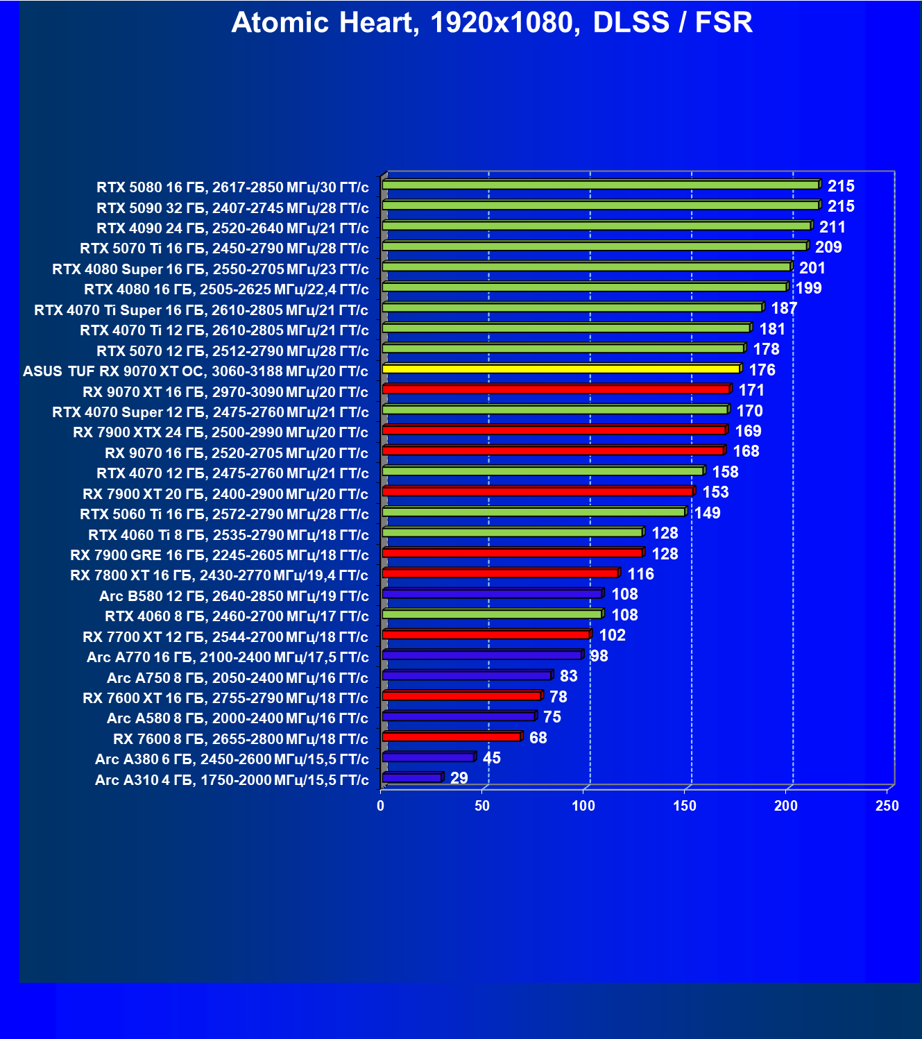 | 07 | RX 9070 XT 16 ГБ, 2970—3090 МГц/20 ГТ/с | 2168 | 244 | 89 000 |