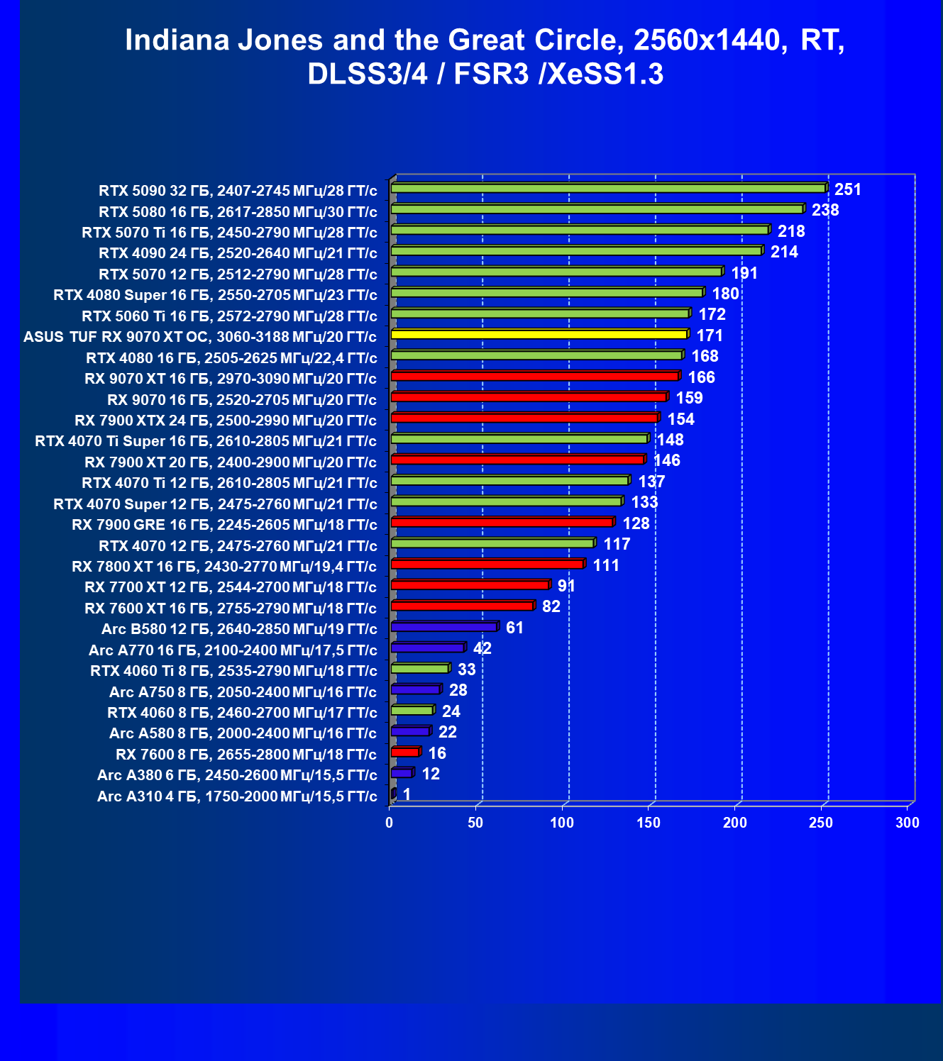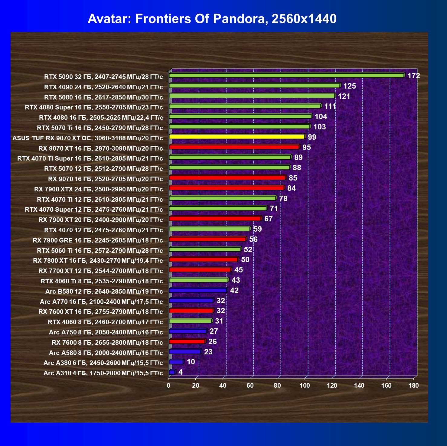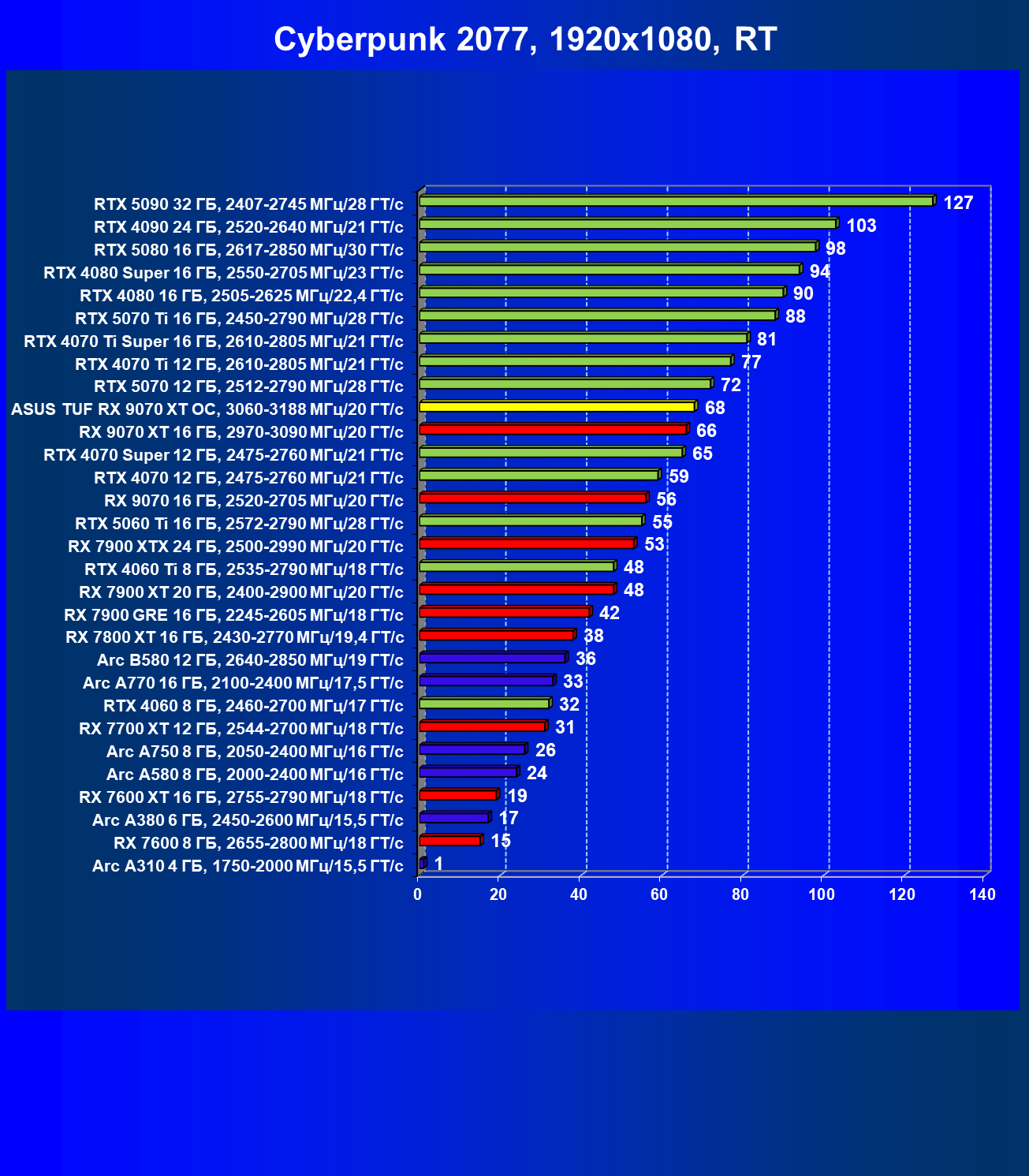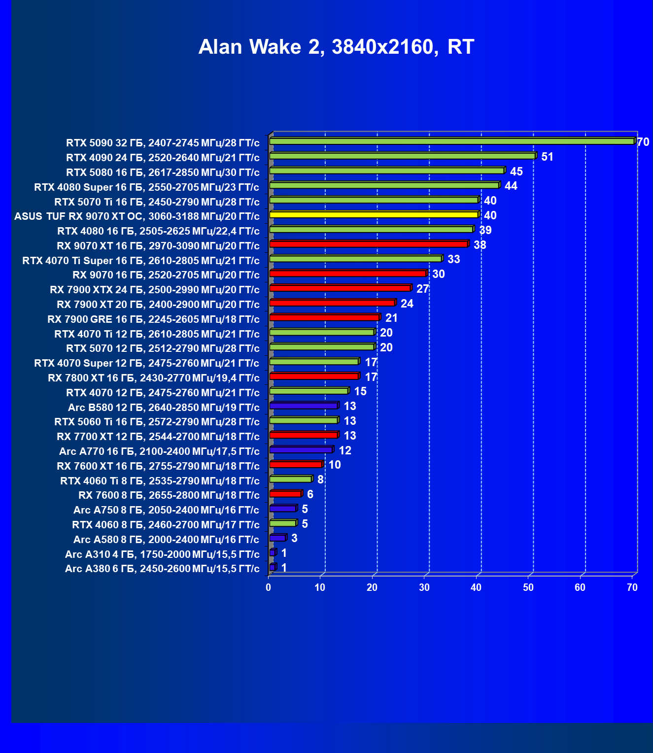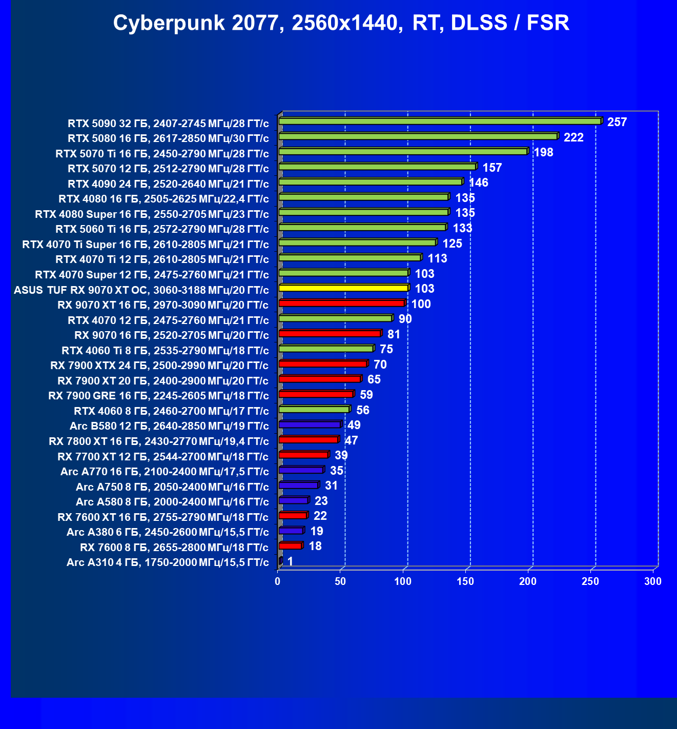| 05 | Asus TUF RX 9070 XT OC, 3060—3188 МГц/20 ГТ/с | 2252 | 242 | 93 000 |