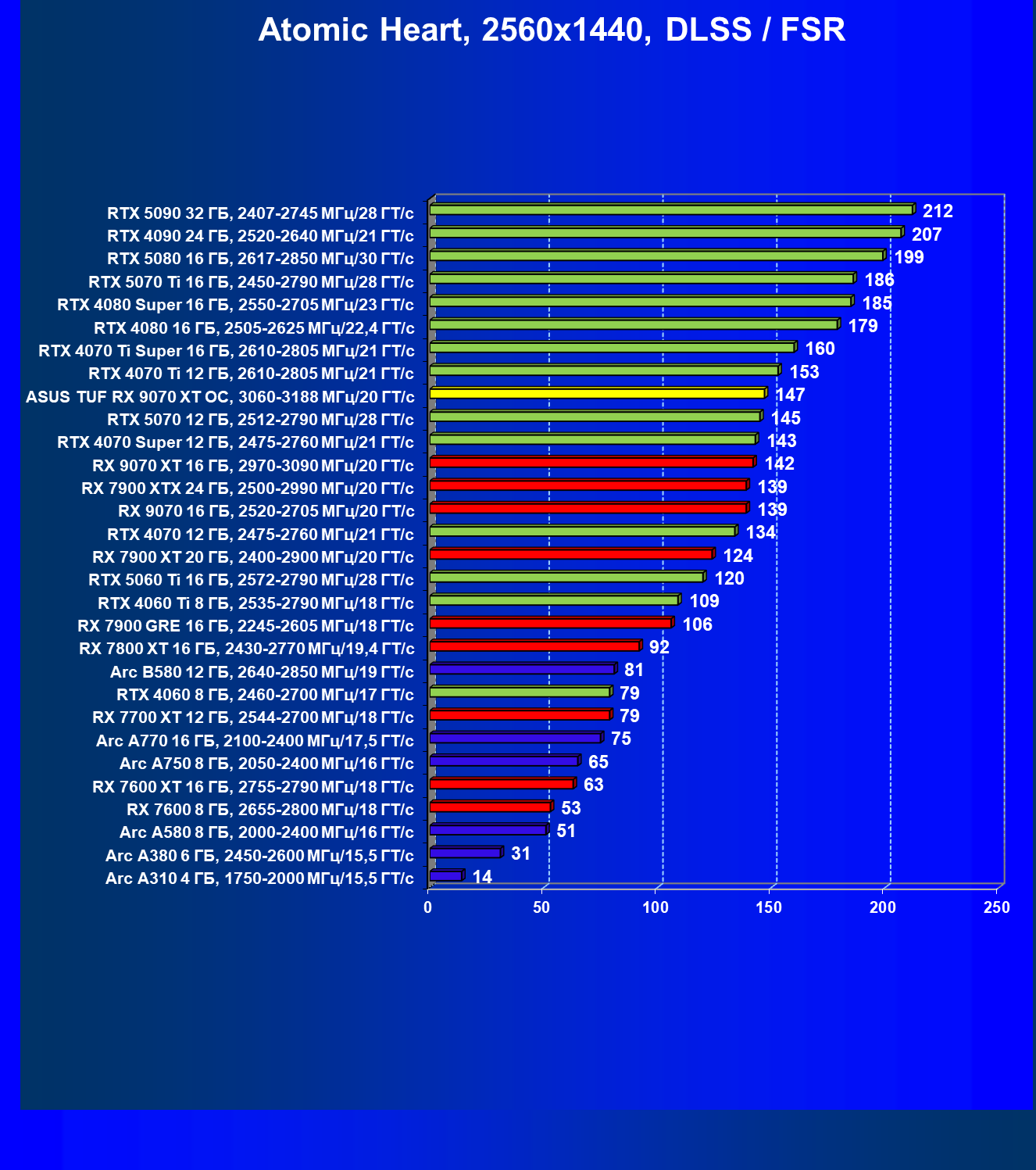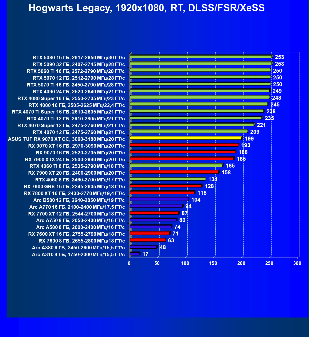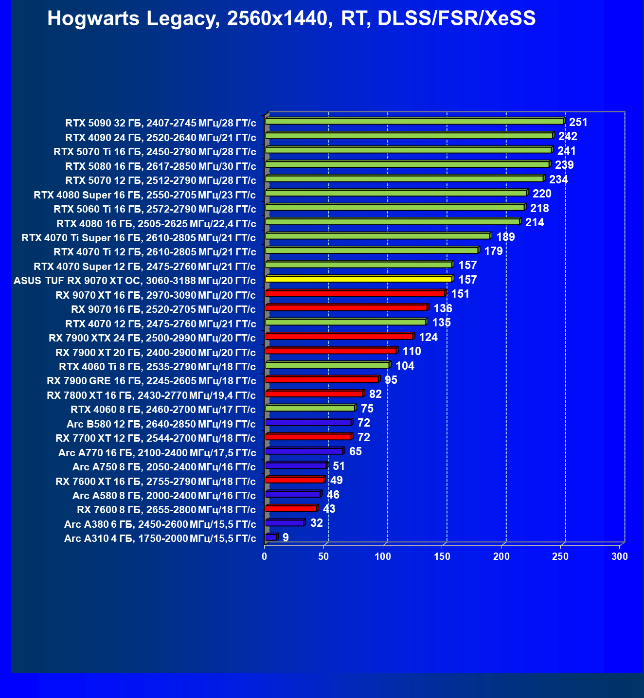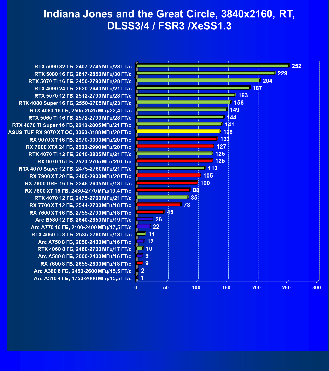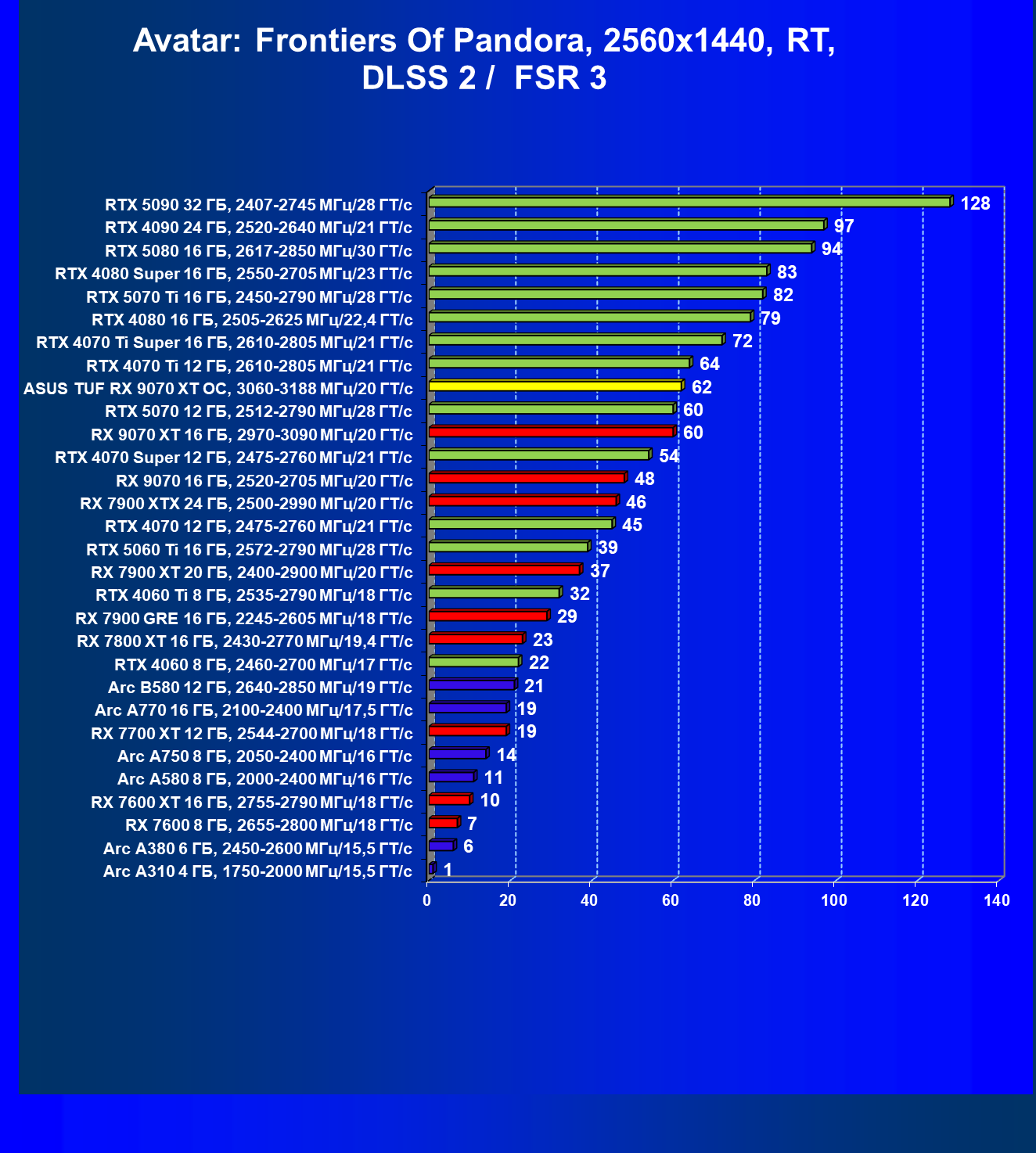 | 05 | Asus TUF RX 9070 XT OC, 3060—3188 МГц/20 ГТ/с | 2252 | 242 | 93 000 |