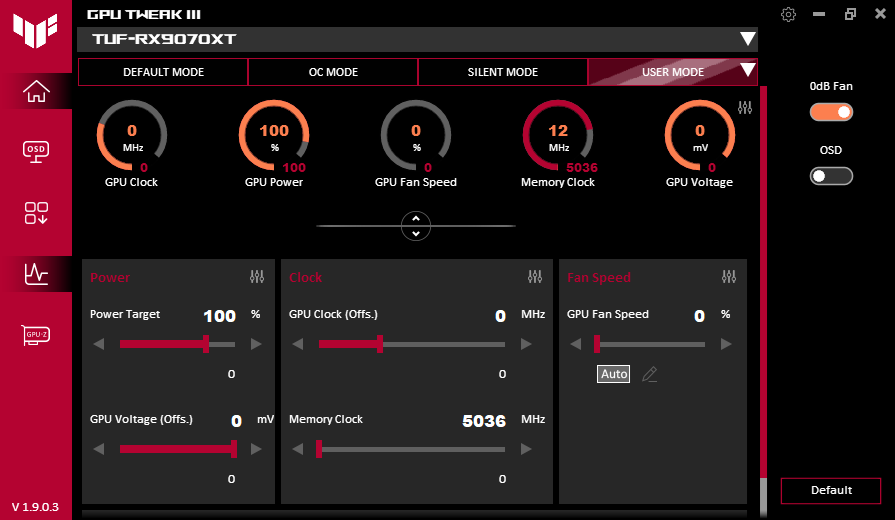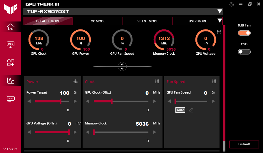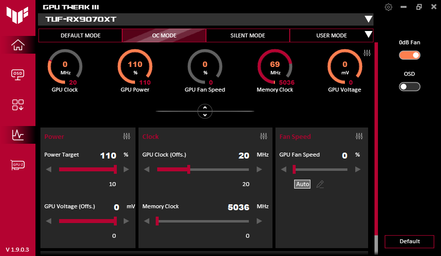 Управление работой карты обеспечивается с помощью фирменной программы Asus GPU Tweak III, мы о ней уже много раз писали: программа предоставляет управление вентиляторами, частотами работы карты и напряжением ядра, слежение за состоянием карты (мониторинг) и многое иное.