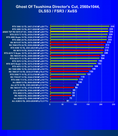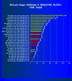 - Результаты тестов со включенной аппаратной трассировкой лучей и/или DLSS/FSR/XeSS в разрешениях 1920×1080, 2560×1440 и 3840×2160