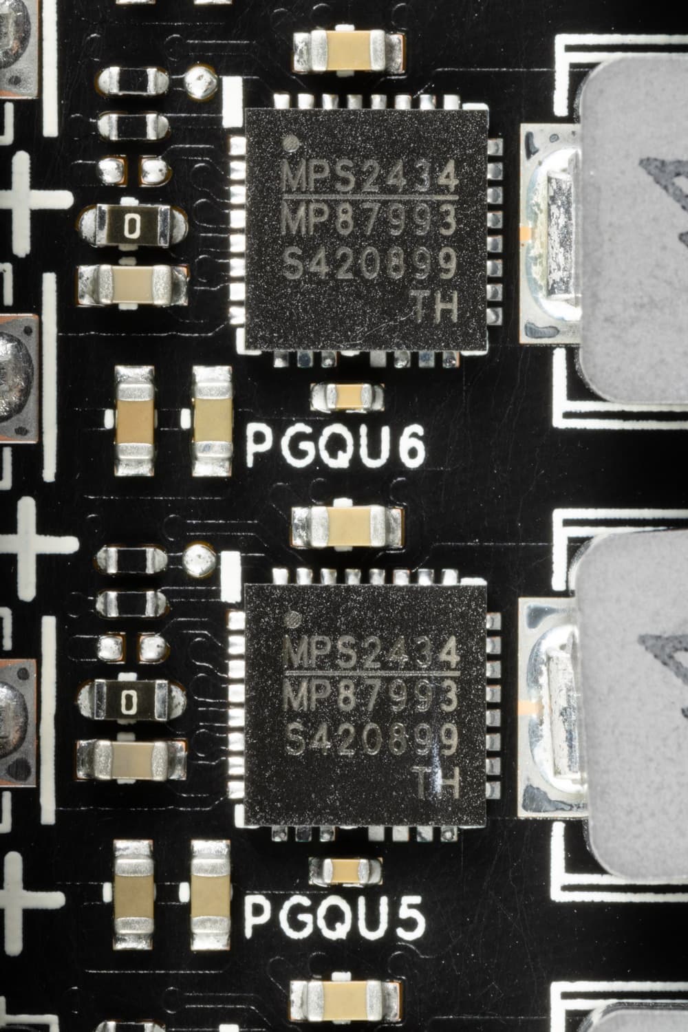 У карты имеется два ШИМ-контроллера Monolithic Power Systems MP2868, они работают в паре и управляют обеими схемами питания.
