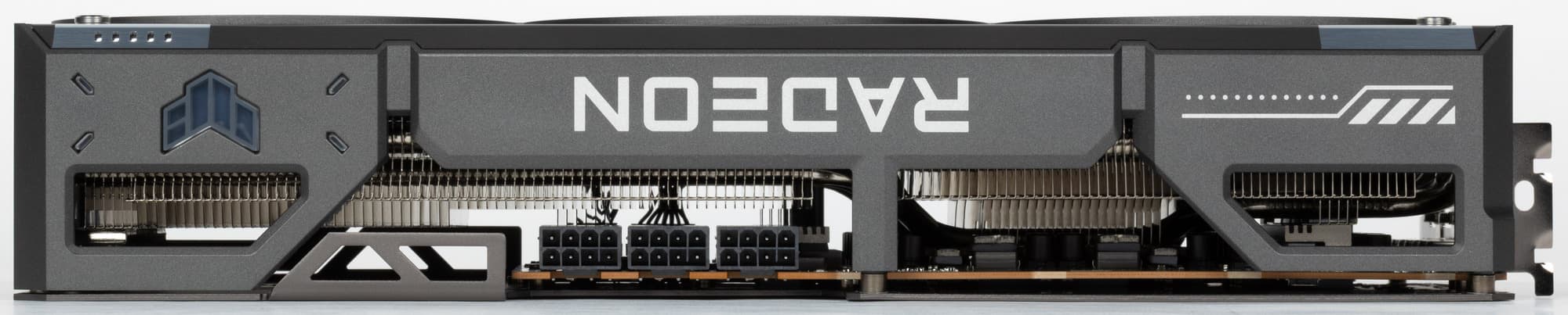 8 трубок припаяны к большой медной никелированной пластине, которая охлаждает как ядро, так и микросхемы памяти. Для охлаждения преобразователей питания VRM имеются свои подошвы на радиаторе. Задняя пластина не только служит элементом защиты PCB, но и участвует в охлаждении тыльной стороны PCB через термопрокладки.