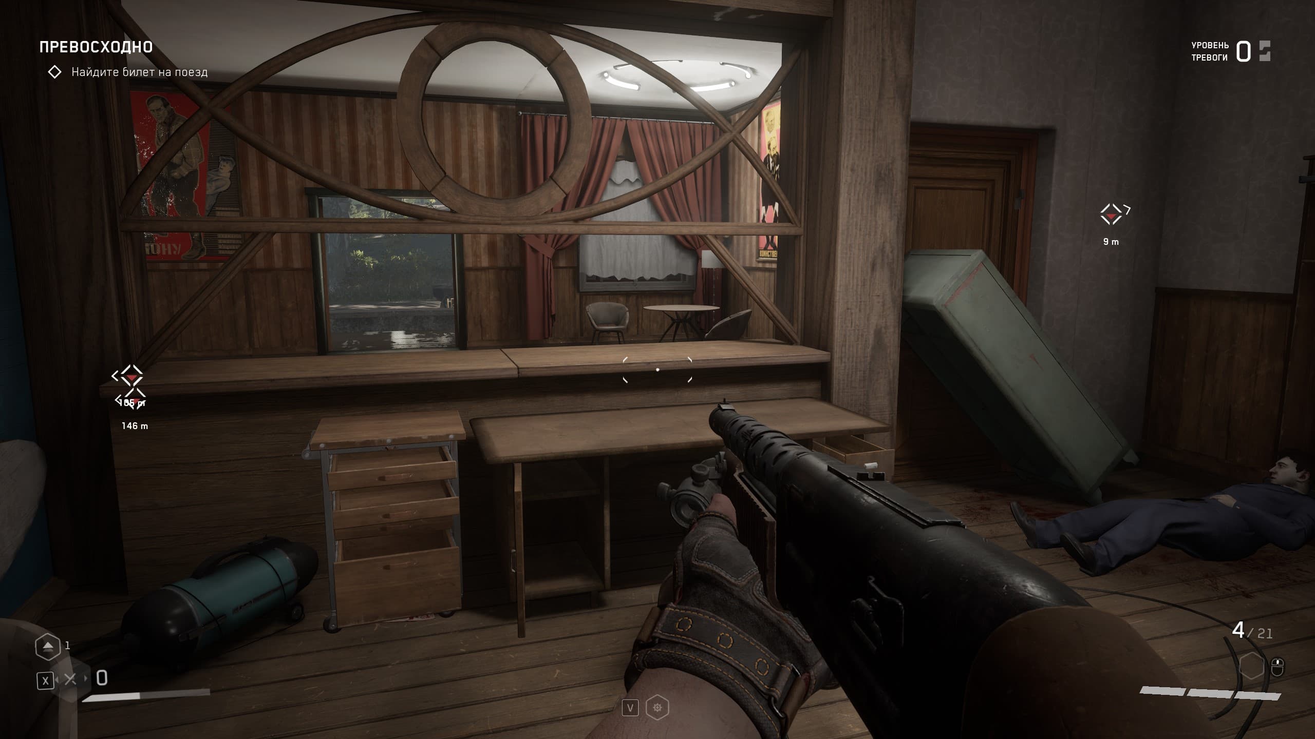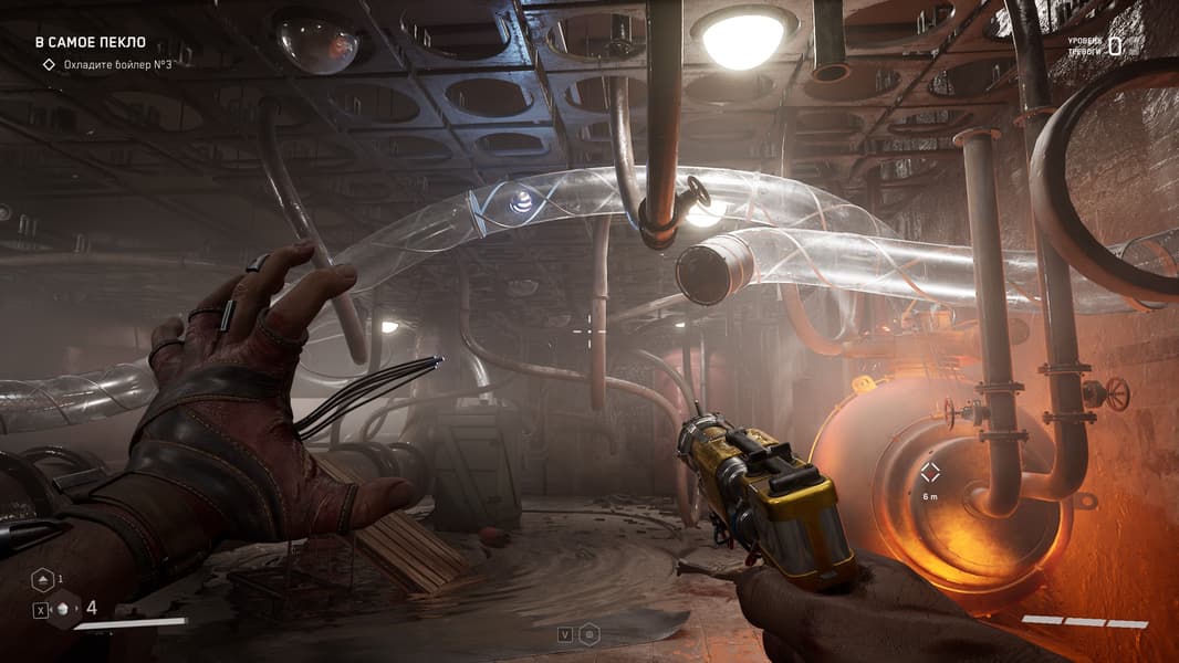 Локации игры насыщенны местами, где можно пошуршать своей чудо-рукой, чтобы найти что-то возможно ценное для прокачки навыков и умений, а так же боеприпасы и элементы для прокачки оружия, но в целом механика такова, что бегаешь из локации в локацию и как экстрасенс наводишь свою руку с перчаткой на шкафы и всякую мебель с мыслью: а вдруг что полезное выскочит, а мы собираем все, что выпадет, а дальше уж разберемся — куда это барахло применить.
