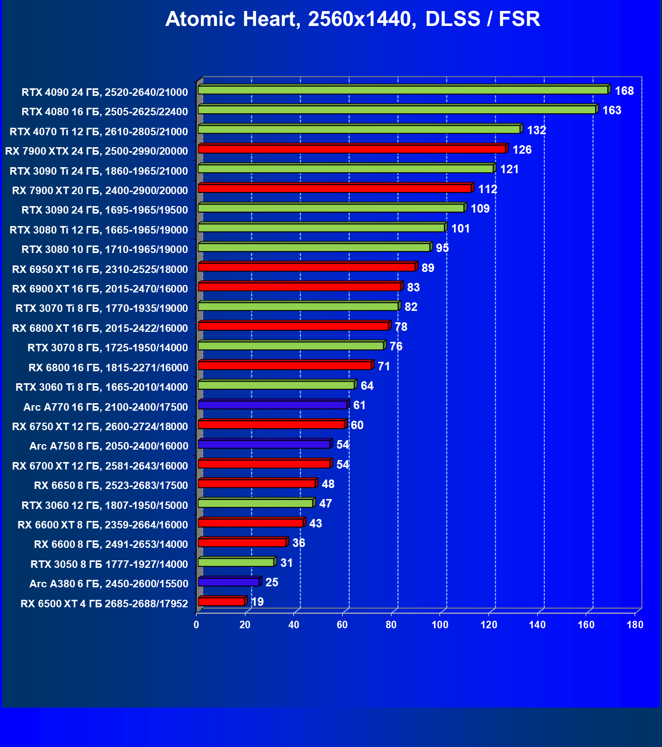 Если рассматривать самое популярное разрешение Full HD, то для того, чтобы играть на максимальных настройках графики, нужно вооружиться GeForce RTX 3060 Ti, Radeon RX 6700 XT или Intel Arc 770. В разрешении 2.5K достаточную производительность обеспечат GeForce RTX 3070 и Radeon RX 6800 XT. В разрешении 4K для комфорта потребуется GeForce RTX 3090 и Radeon RX 7900 XT. А для гарантированного полного комфорта в том же 4K лучше использовать GeForce RTX 4080 или Radeon RX 7900 XTХ.