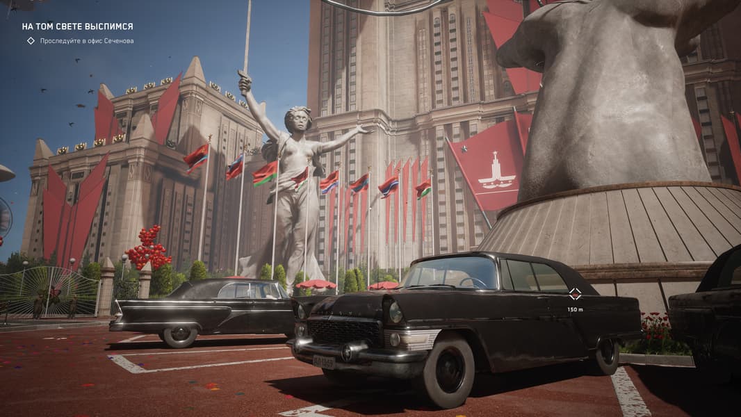 С самого начала игры нам бросаются в глаза красивые легковые и где-то легендарные советские представительские автомобили, имеющих даже реальное название «Чайка» (детища Горьковского автозавода, который выпускал их с 1959 по 1988 год). Но в игре лимузин вдруг превращается в кабриолет и, паря в воздухе, знакомит нас с высоты птичьего полета с также парящим в воздухе городом, и в этот момент есть ощущение, что мы находимся в одном из фильмов про Гарри Поттера.