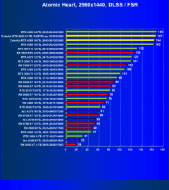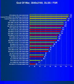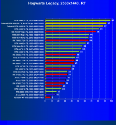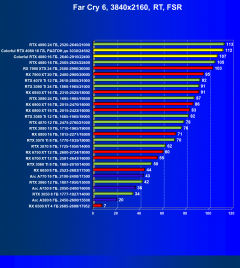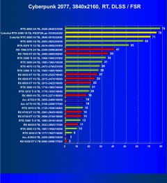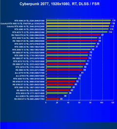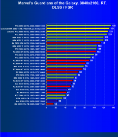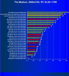 - Результаты тестов со включенной аппаратной трассировкой лучей и/или DLSS/FSR в разрешениях 1920×1080, 2560×1440 и 3840×2160