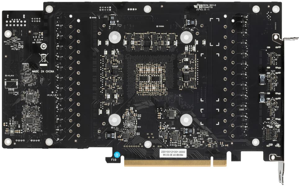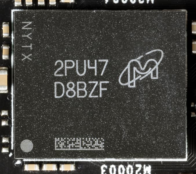 Карта имеет 16 ГБ памяти GDDR6X SDRAM, размещенной в 8 микросхемах по 16 Гбит на лицевой стороне PCB. Микросхемы памяти Micron (GDDR6X, MT61K512M32KPA-24 / D8BZF) рассчитаны на номинальную частоту работы в 3000 (24000) МГц.