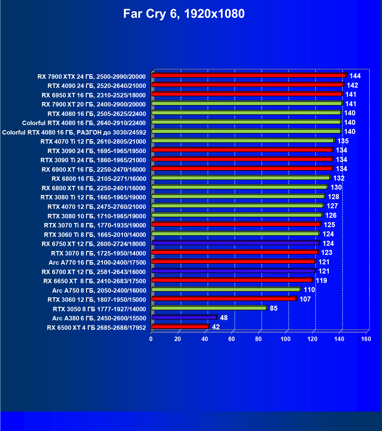| 13 | RX 7900 XT 20 ГБ, 2400—2900/20000 | 163 | 1399 | 86 000 |