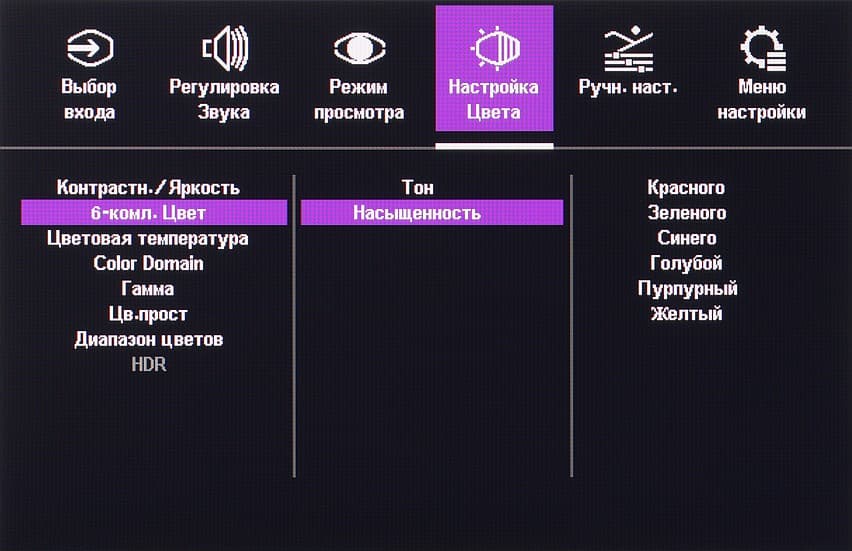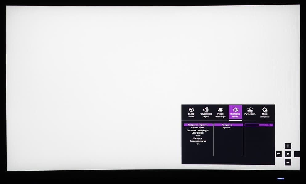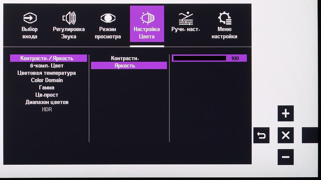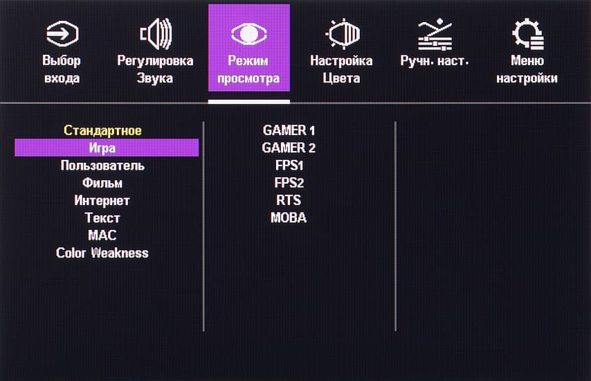 Настроек, влияющих на яркостный и цветовой баланс, не очень много, что для игрового монитора ожидаемо.