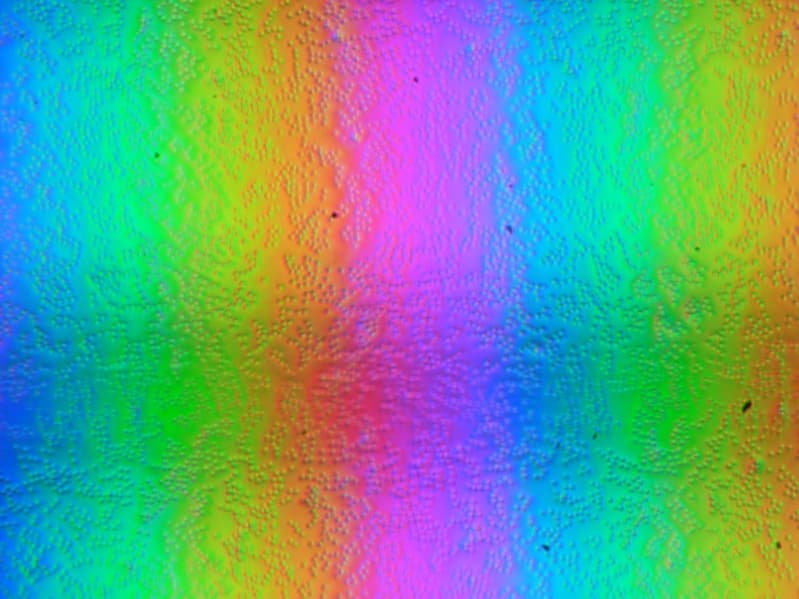 Зерно этих дефектов в несколько раз меньше размеров субпикселей, поэтому фокусировка на микродефектах и «перескок» фокуса по субпикселям при изменении угла зрения выражены слабо, из-за этого нет и «кристаллического» эффекта.