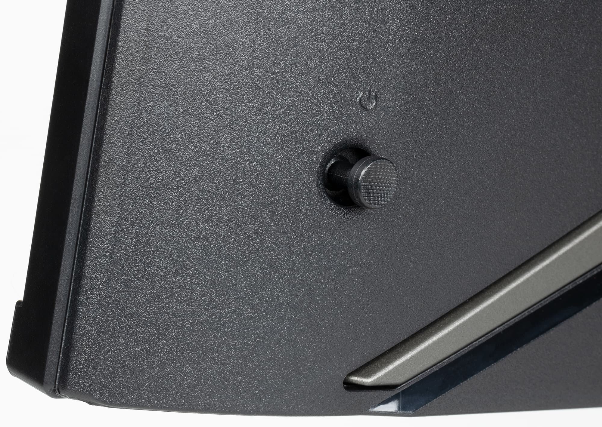 По центру нижней планки есть логотип производителя, а на нижнем торце ближе к правому краю находится светорассеиватель умеренно яркого индикатора состояния. При типичной посадке пользователь этот индикатор не видит.