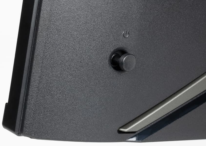 Дизайн строгий, игровую направленность в явном виде ничего не выдает. Панели блока экрана и кожухи узла крепления блока экрана изготовлены из черного пластика в основном с матовой поверхностью. Внешняя поверхность матрицы черная, полуматовая (зеркальность хорошо выражена), внешний слой матрицы жесткий. Плоскость экрана изогнута по цилиндру так, что правый и левый край немного выдвинуты вперед. Заявленный радиус изгиба равен 1,5 м. Равномерность кривизны экрана у данной модели хорошая, правда в вертикальной полосе шириной порядка 10 см у правого и левого края экран практически плоский, но это характерно для всех изогнутых ЖК-экранов. Спереди экран выглядит как монолитная поверхность, ограниченная снизу неширокой планкой, а по периметру — узкой окантовкой. Выведя изображение на экран, можно увидеть, что на самом деле между внешними границами экрана и собственно областью отображения есть неширокие поля.