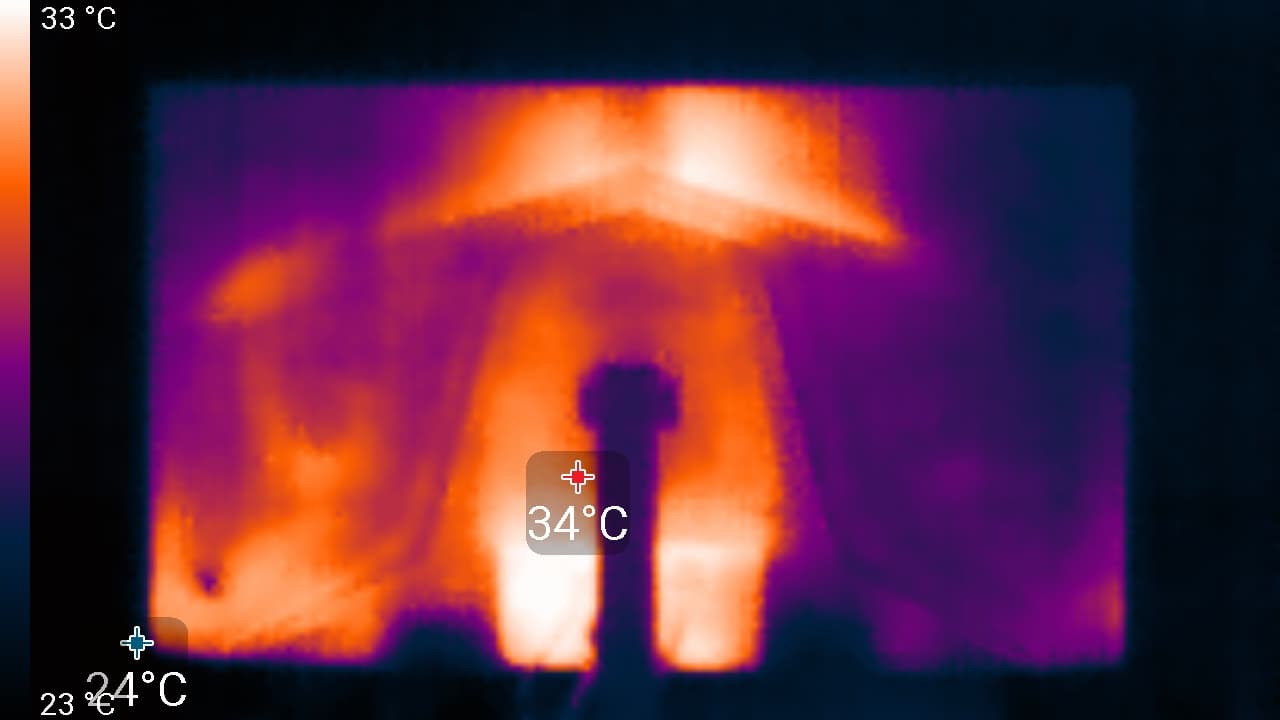 Нагрев монитора можно оценить по снимкам с ИК-камеры, полученным после долговременной работы монитора на максимальной яркости в помещении с температурой примерно 24 °C.