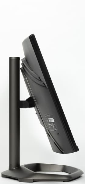 Основание подставки позволяет опереть на него дальний край клавиатуры, а в ограниченном основанием пространстве можно складывать всякую офисную мелочевку. Отметим, что все несущие элементы подставки металлические (сталь или алюминиевый сплав). Конструкция подставки довольно жесткая. Монитор стоит на подставке очень устойчиво. При необходимости подставку можно отсоединить (или изначально не подсоединять) и закрепить блок экрана на VESA-совместимом кронштейне (площадка 100 на 100 мм).