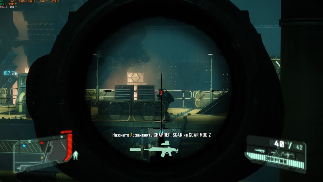 Эти же стрелы помогают устранять пулеметы и лазерные ловушки. Главное — чтобы стрела долетела, а для этого есть выбор силы натяжения. По-началу нам будет доступна только карбоновая стрела, чтобы скрытно устранить солдата, не потратив при этом запас патронов другого орудия.