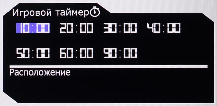 Индикатора питания мы не обнаружили. На нижнем торце есть что-то похожее на него, но ни в каких режимах это не светится. Включается монитор нажатием на джойстик, а выключается — длительным нажатием на джойстик. Когда монитор включен и на экране нет меню, то при отклонении джойстика вверх, вниз, вправо или влево на экран выводится ползунок или список/короткое меню четырех настроек — таймер с обратным отсчетом, выбор перекрестия прицела, выбор входа, выбор режима изображения.
