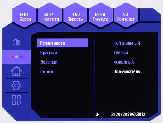 К сожаление, при выборе этого профиля настройки цветового баланса недоступны. Впрочем, как правило, в развитых OS, в Windows в частности, и/или в более-менее продвинутом ПО для работы с изображениями нужная коррекция цвета достигается при использовании системы управления цветом (CMS). Например, можно использовать цветовой профиль, созданный нами во время тестирования с помощью ПО DisplayCAL в случае профиля без коррекции.