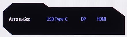 Монитор оснащен двумя цифровыми входами в полноразмерном варианте — DisplayPort и HDMI, — дополненные входом USB-C. Выбор входа осуществляется в основном меню установок или в меню быстрого доступа. Есть отключаемая функция автоматического поиска сигнала на входах.
