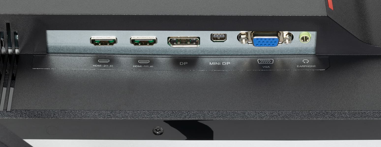 Представление об оснащенности интерфейсами дает таблица с характеристиками в начале статьи. Отметим наличие аналогового входа VGA, который, правда, не может реализовать весь потенциал монитора, так как поддерживает, скорее всего, максимум 1920×1080 пикселей при 60 Гц (мы не проверяли), но может пригодиться для совместимости с каким-то старым оборудованием. Есть отключаемая функция автоматического выбора активного входа.