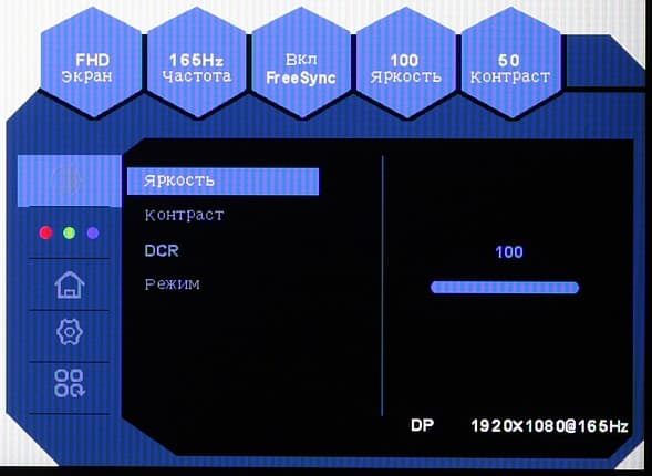 Только при подключении к компьютеру по DisplayPort поддерживается разрешение до 1920×1080 при 165 Гц кадровой частоты в режиме 10 бит на цвет на вход и без потери цветовой четкости. При подключении по HDMI в разрешении 1920×1080 можно получить максимум 144 Гц кадровой частоты при 8 бит на цвет, а при 100 Гц — уже 10 бит.
