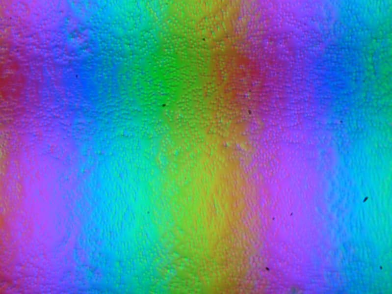 Зерно этих дефектов в несколько раз меньше размеров субпикселей, поэтому фокусировка на микродефектах и «перескок» фокуса по субпикселям при изменении угла зрения выражены слабо, из-за этого нет и «кристаллического» эффекта.