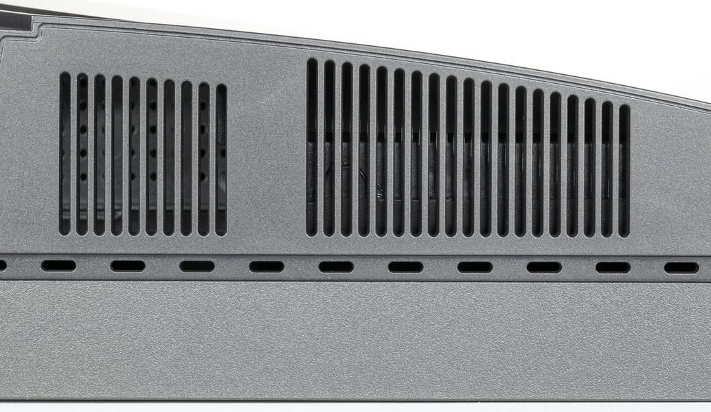 В нише с разъемами, на нижнем торце, на задней панели, а также по периметру блока экрана есть вентиляционные решетки. За решетками на нижнем торце размещены два бокса с громкоговорителями.