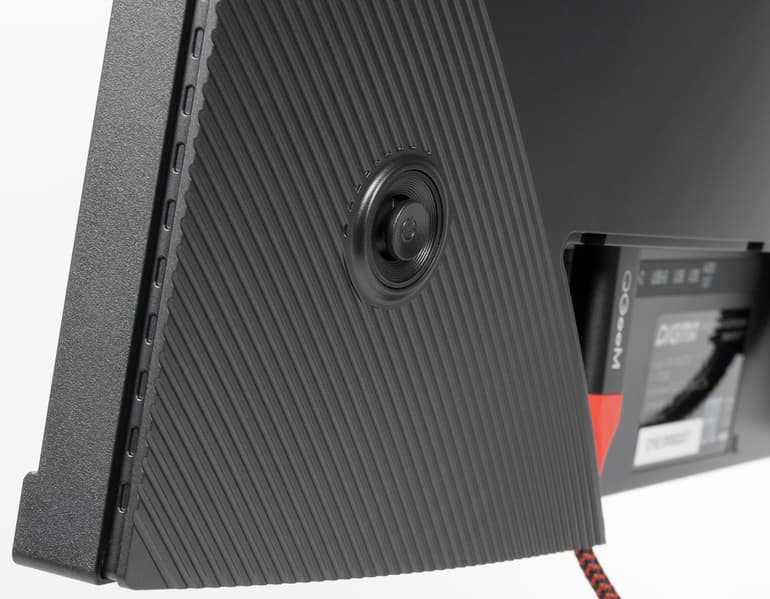 Цифровые аудиосигналы, передаваемые на входы DisplayPort, HDMI и USB-C, после преобразования в аналоговый вид выводятся на встроенные громкоговорители и через гнездо миниджек 3,5 мм. К этому гнезду можно подключить внешнюю активную акустическую систему или наушники. Мощности выхода на наушники хватило, чтобы в 32-омных наушниках с чувствительностью 92 дБ громкость была достаточной и даже с небольшим запасом. Качество звука в наушниках хорошее — звук достаточно чистый, в паузах шума не слышно, разве что не хватает совсем низких частот.