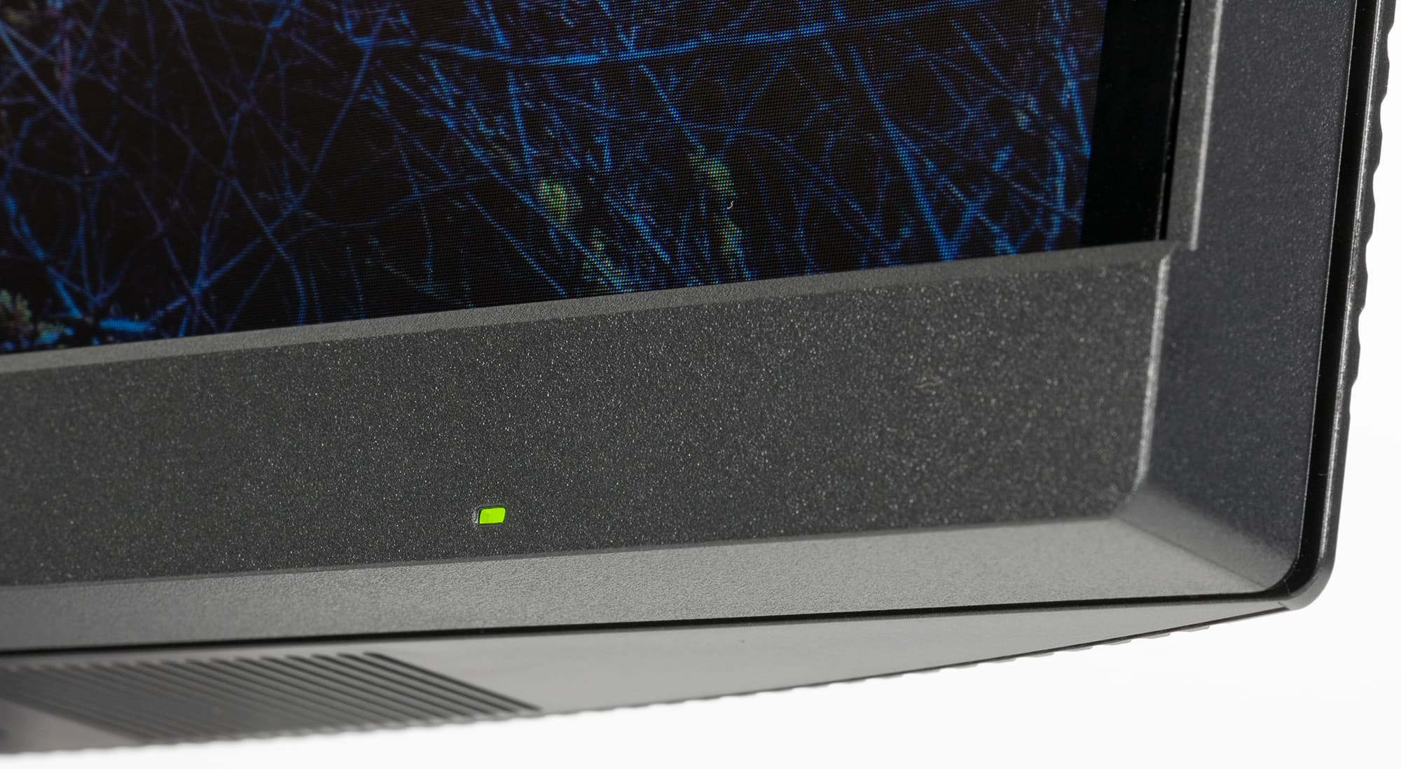 Индикатор питания при работе неярко светится зеленым, в режиме ожидания — мигает зеленым и не горит, если монитор условно выключен. Включается монитор нажатием на джойстик, а выключается — длительным нажатием на джойстик. Когда монитор включен и на экране нет меню, то при отклонении джойстика вверх, вниз, вправо или влево на экран выводится ползунок или список/короткое меню четырех настроек — таймер с обратным отсчетом, выбор перекрестия прицела, выбор входа, выбор режима изображения.