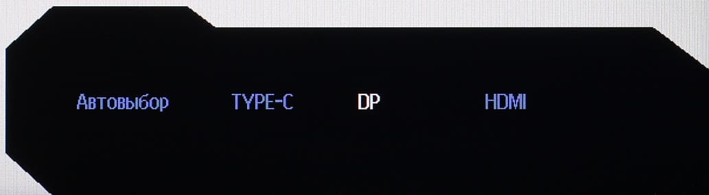 Монитор оснащен двумя цифровыми входами в полноразмерном варианте — DisplayPort и HDMI, — дополненные входом USB-C. Выбор входа осуществляется в основном меню установок или в меню быстрого доступа. Есть отключаемая функция автоматического поиска сигнала на входах.