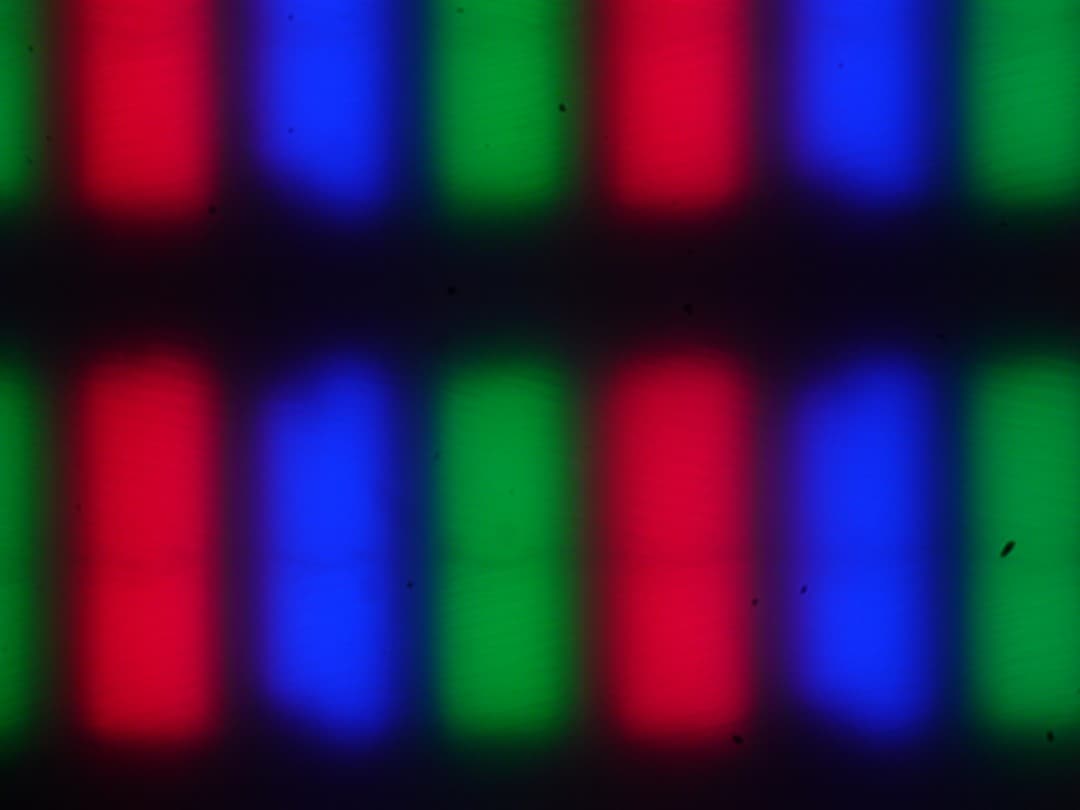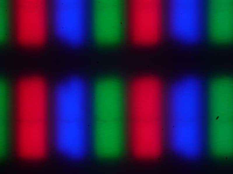 Изображение структуры пикселей из-за матовой поверхности размыто, но характерную для IPS структуру распознать можно (черные точки — это пыль на матрице фотоаппарата):