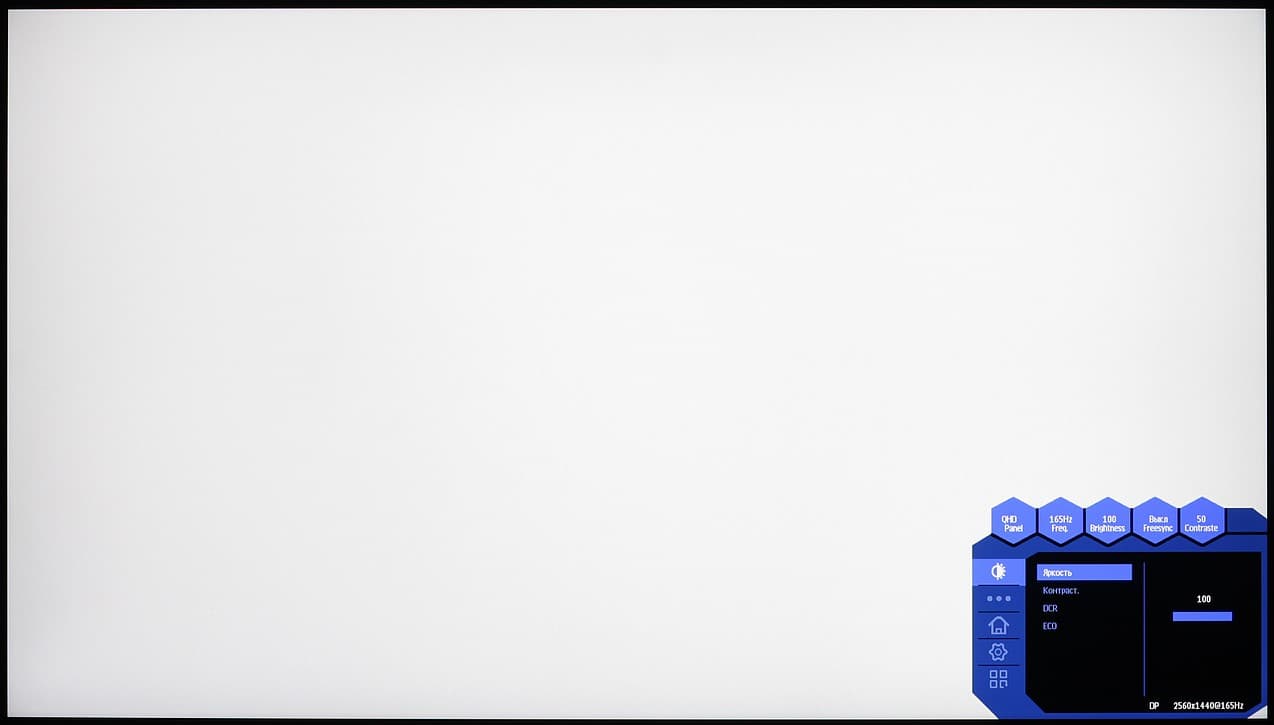 Если отступить от краев, то равномерность всех трех параметров приемлемая. Контрастность для данного типа матриц по современным меркам типичная. Визуально видно, что черное поле в основном ближе к краям немного засвечено. Фотография ниже это демонстрирует: