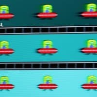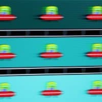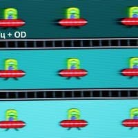 Для наглядного представления о том, что на практике означает такая скорость матрицы, и какие могут быть артефакты от разгона, приведем серию снимков, полученных с помощью движущейся камеры. Такие снимки показывают, что видит человек, если он следит глазами за двигающимся на экране объектом. Описание теста приведено тут, страница с самим тестом тут. Отметим, что получить хорошие по качеству снимки в этом тесте в случае изогнутого монитора сложно. Использовались рекомендованные установки (скорость движения 960 или 990 пиксель/с, то есть на целое число пикселей за кадр), выдержка 1/15 с, на фотографиях указаны значения частоты обновления (тесты проводились для трех частот), а также включен ли разгон.