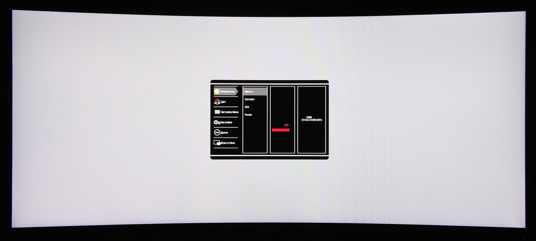 Только при подключении к компьютеру по DisplayPort поддерживается разрешение до 3440×1440 при 165 Гц кадровой частоты в режиме 8 бит на цвет на вход и без потери цветовой четкости. Снижение частоты до 144 Гц позволяет увеличить разрядность до 10 бит на цвет. При подключении по HDMI в разрешении 3440×1440 можно получить максимум 100 Гц кадровой частоты при 8 бит на цвет.