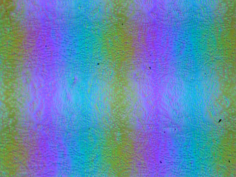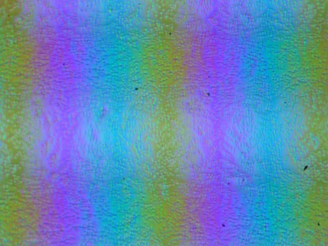 Зерно этих дефектов в несколько раз меньше размеров субпикселей, поэтому фокусировка на микродефектах и «перескок» фокуса по субпикселям при изменении угла зрения выражены слабо, из-за этого нет и «кристаллического» эффекта.