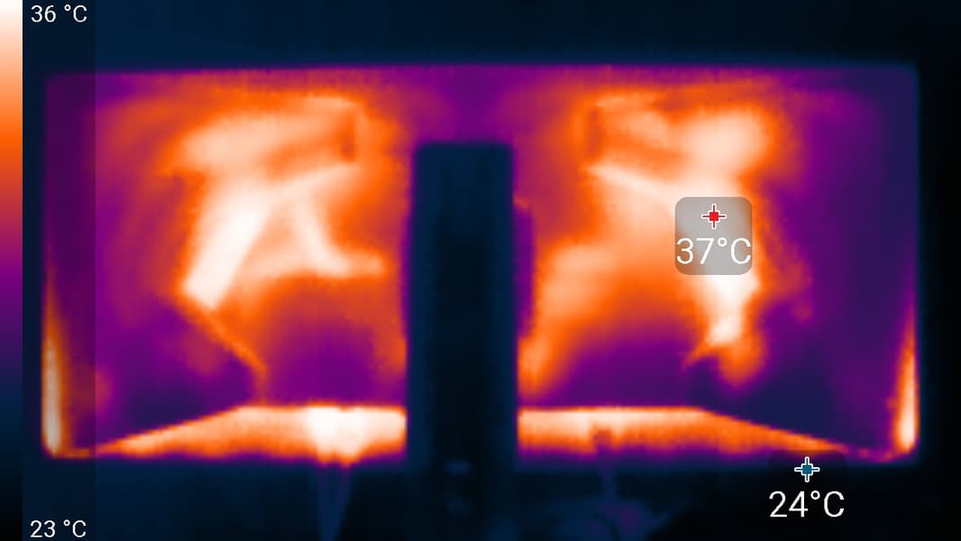 Нагрев монитора можно оценить по снимкам с ИК-камеры, полученным после долговременной работы монитора на максимальной яркости в помещении с температурой примерно 24 °C.
