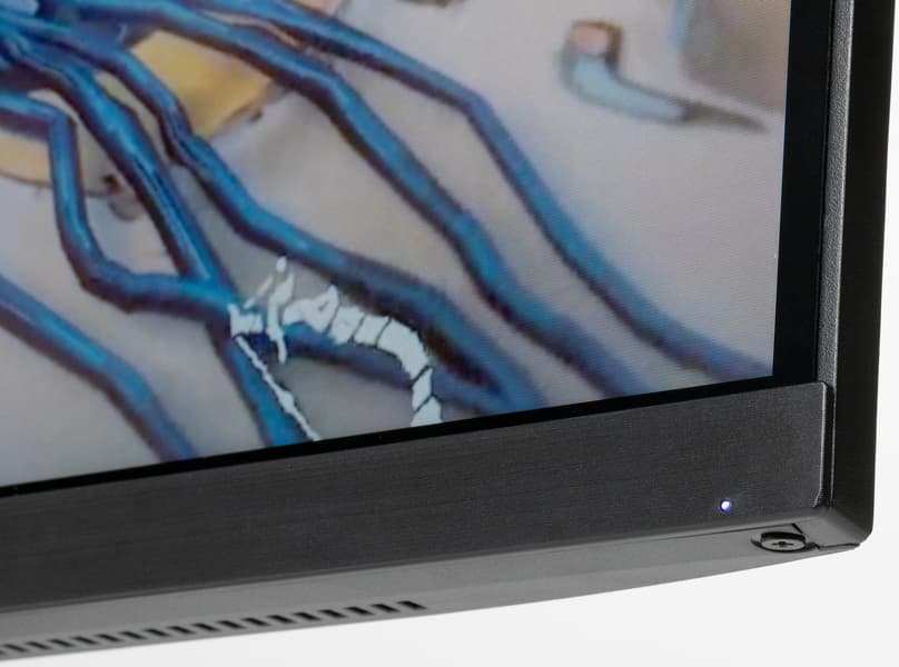 Индикатор питания неярко светится синим при работе, мигает красным — в режиме ожидания, и не горит, если монитор условно выключен. Если монитор работает, и на экране нет меню, то при отклонении джойстика вверх выводится меню настройки экранного таймера с фиксированными значения, вниз — меню выбора типа перекрестия экранного прицела, которое выводится строго в центре, вправо — выбор входа, влево — переключение профилей изображения, а короткое нажатие на джойстик выводит на экран основное меню с настройками, при этом длительное нажатие на джойстик выключает монитор.