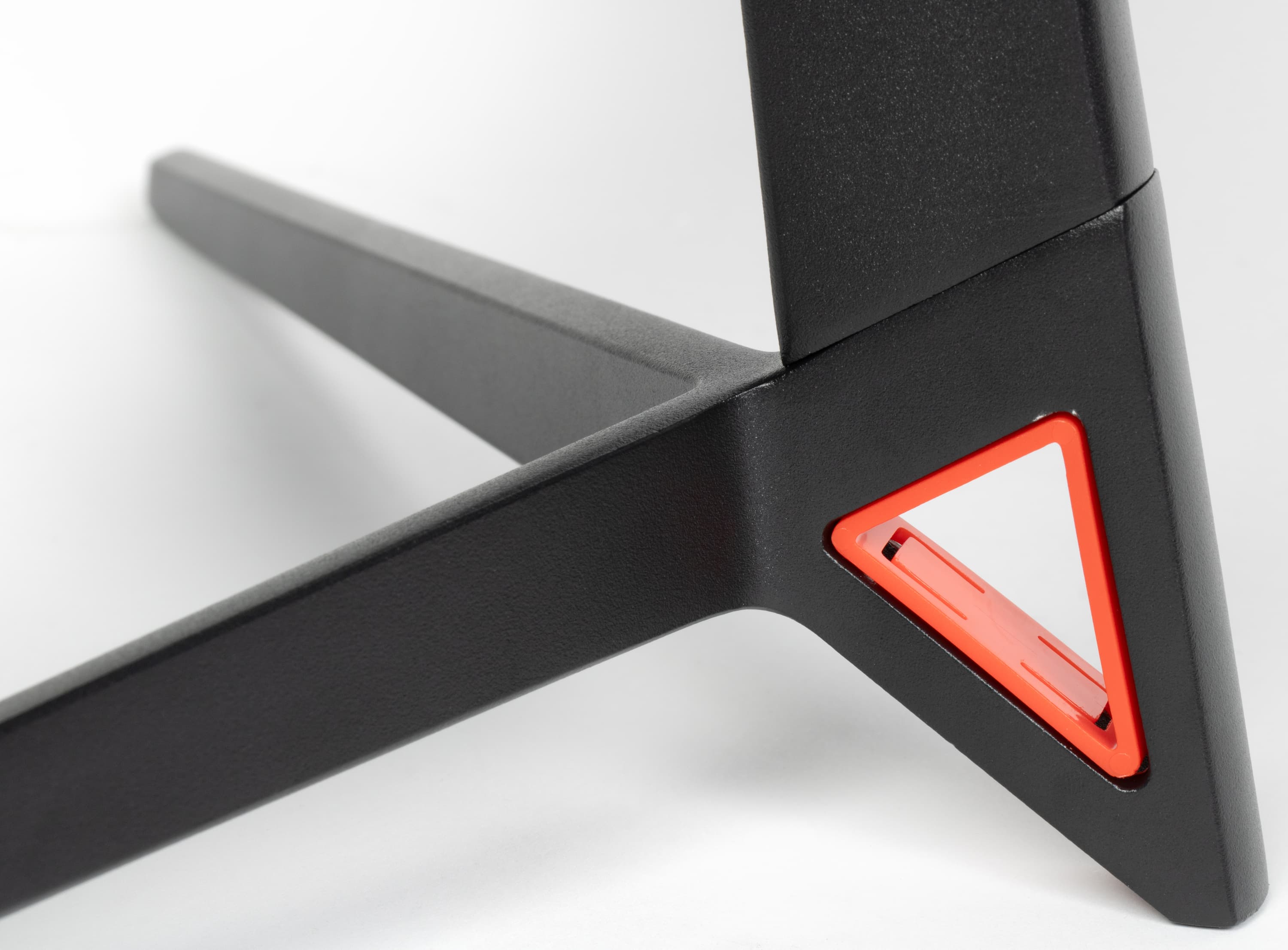 Красная пластиковая вставка в основании подставки выполняет декоративную функцию. Впрочем через отверстие, обрамленное этой вставкой, можно пропустить кабели, например от мыши и клавиатуры, чтобы они меньше мешались.
