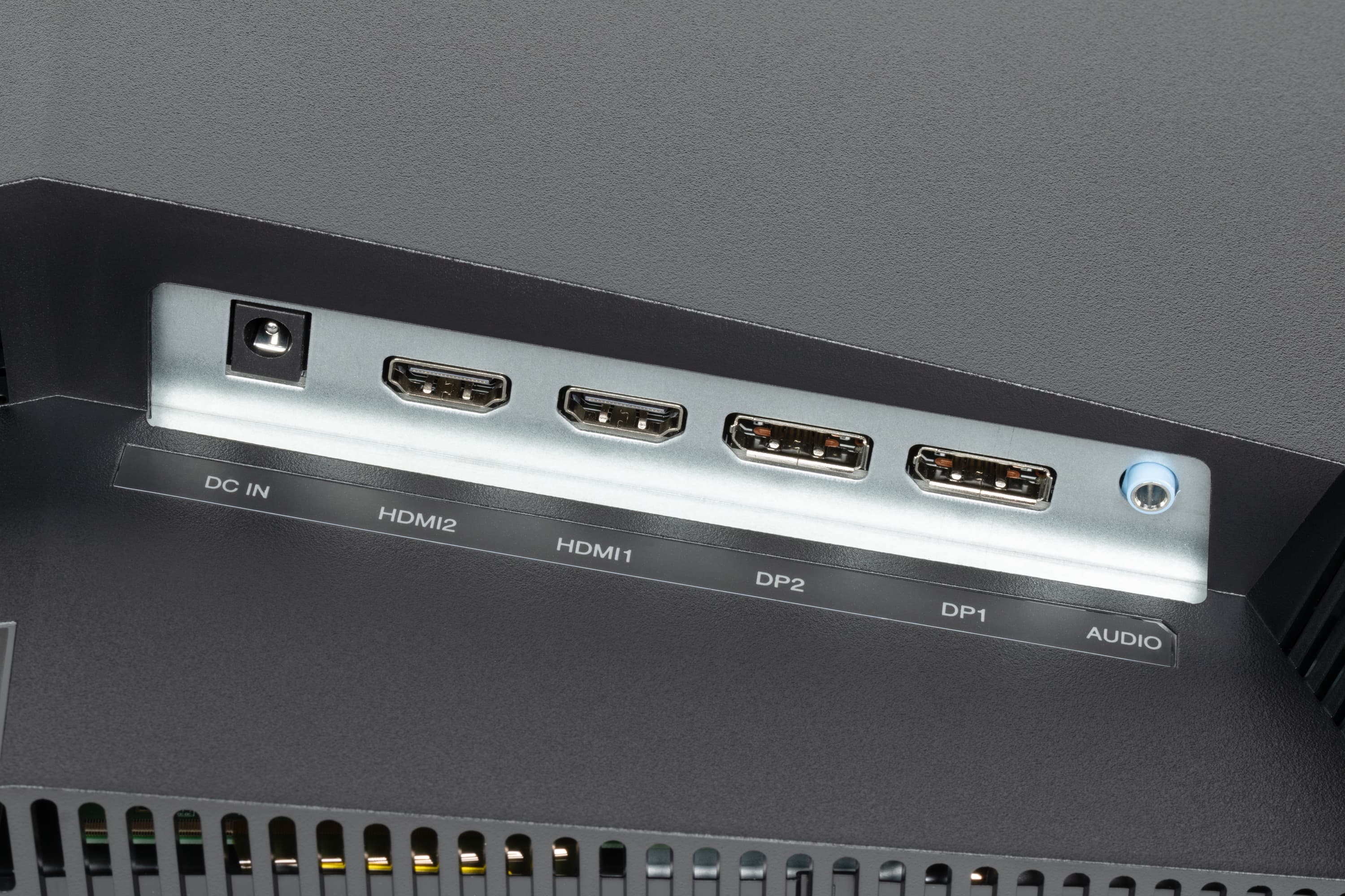 Монитор оснащен четырьмя цифровыми входами в полноразмерном варианте — парой DisplayPort и парой HDMI. Выбор входа осуществляется в основном меню установок или в меню быстрого доступа (если его вызов настроен на кнопку). Есть отключаемая функция автоматического поиска сигнала на входах.