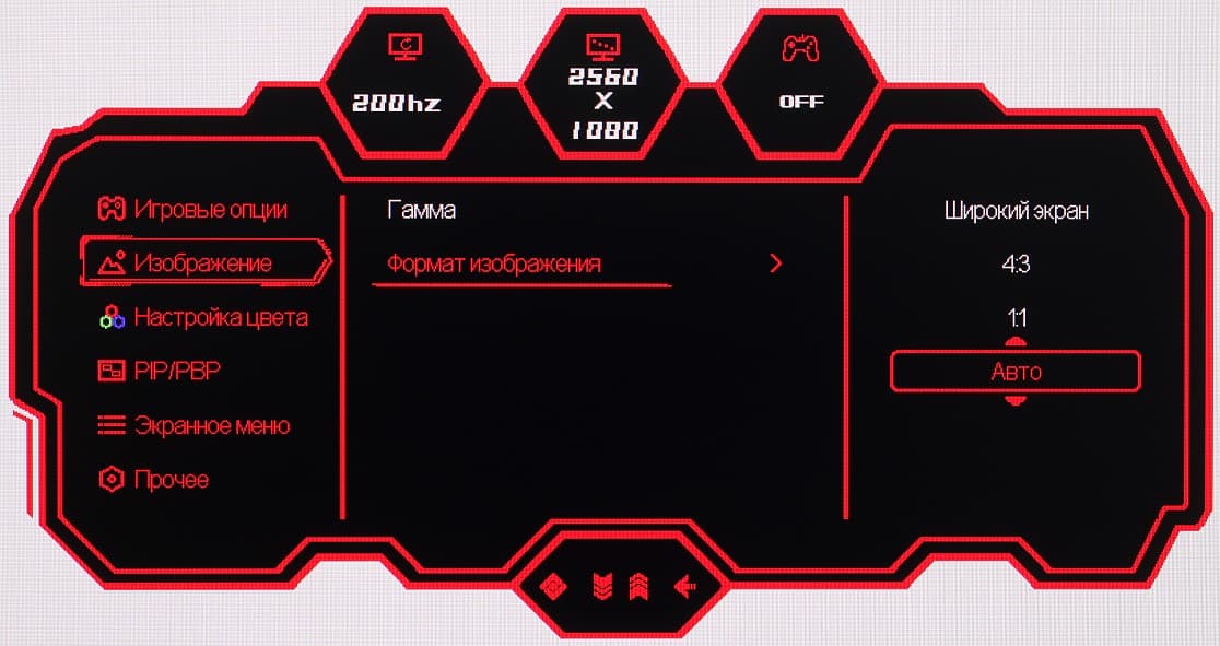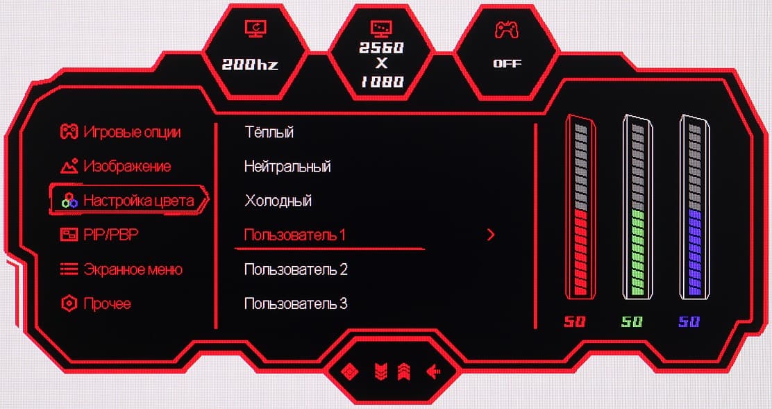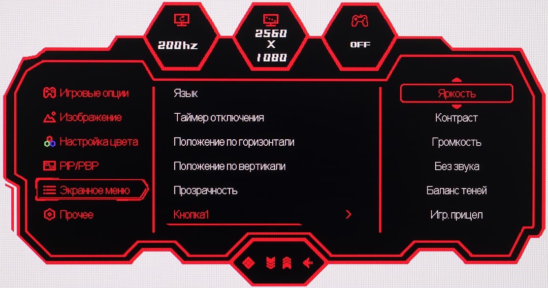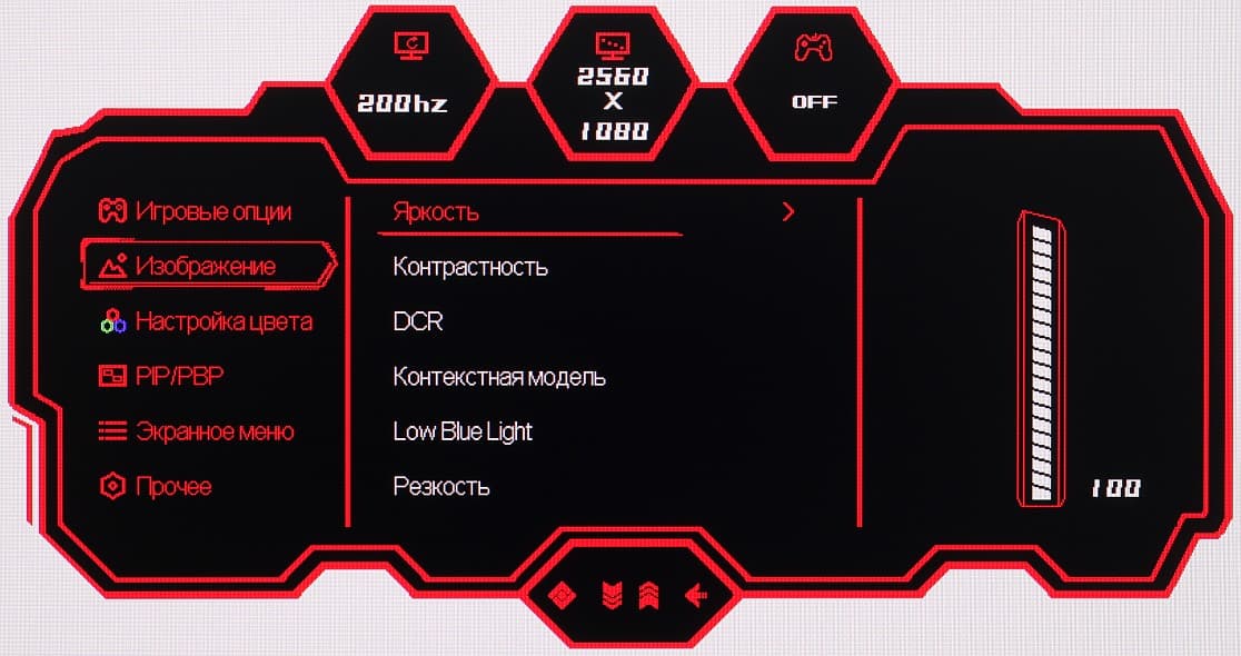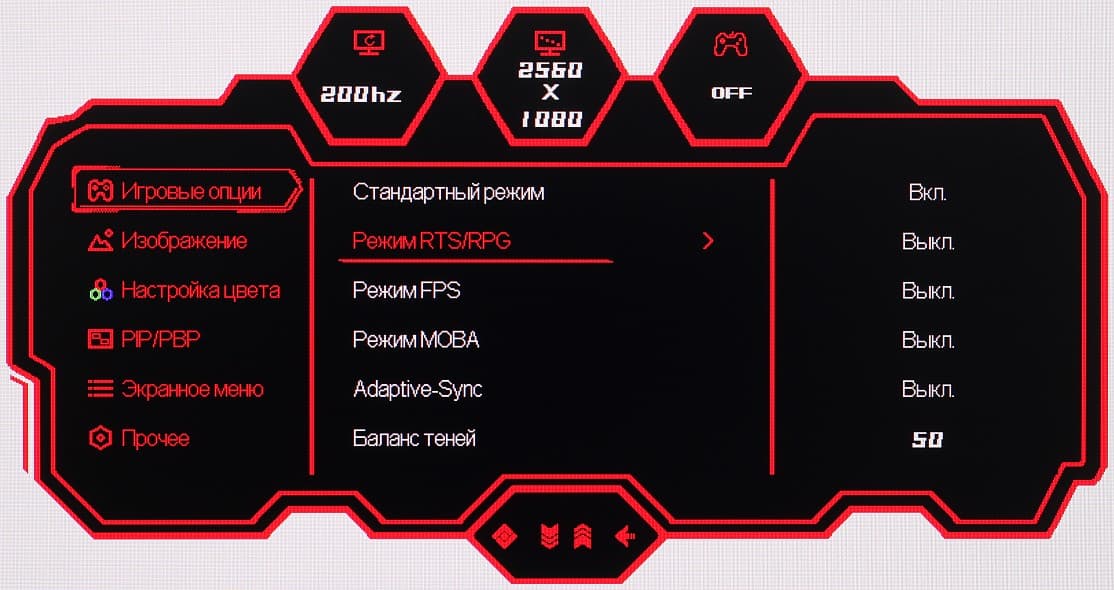 Настроек, влияющих на яркостный и цветовой баланс, не очень много, что для игрового монитора ожидаемо.