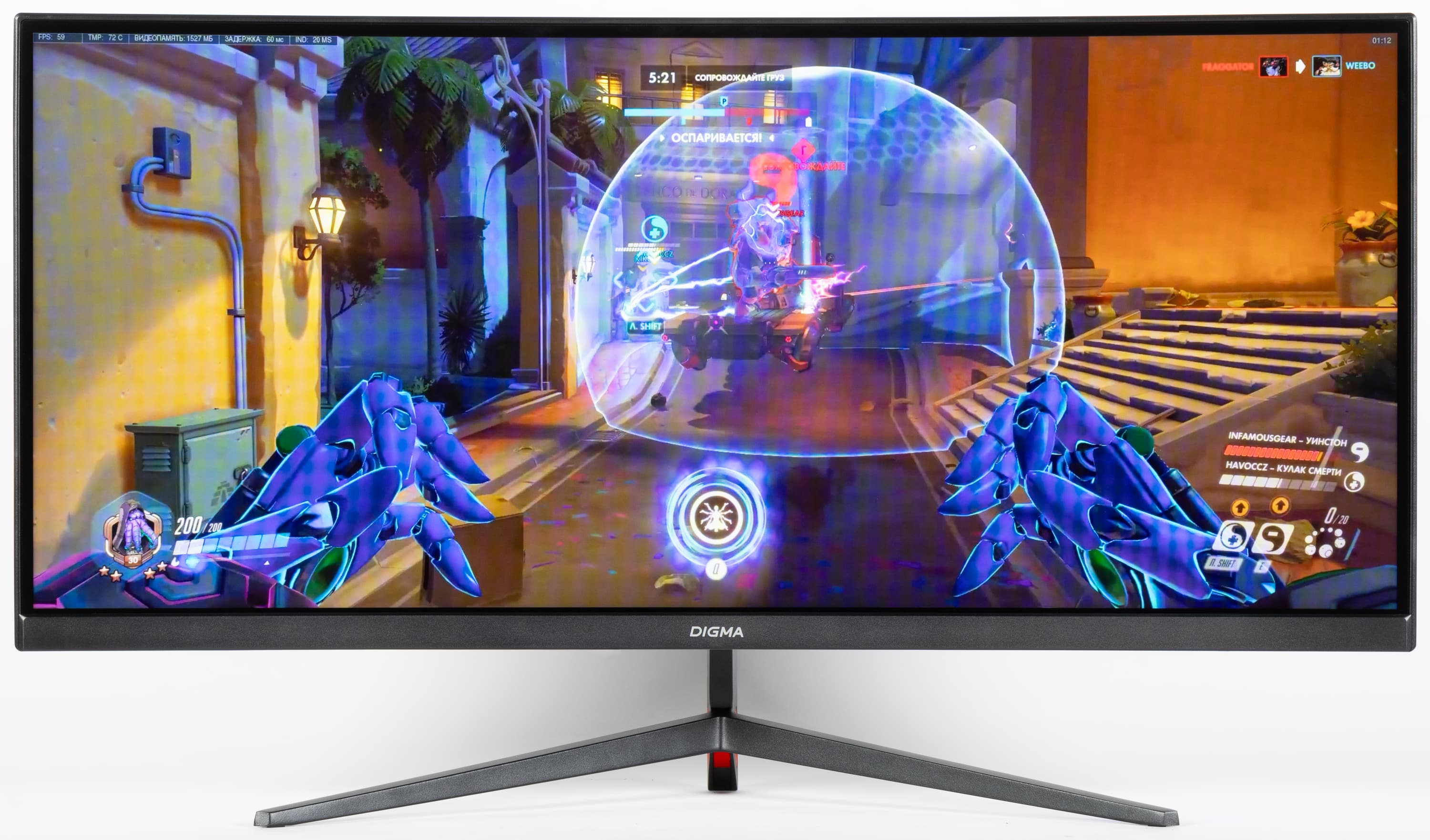 Видно, что при прочих равных условиях четкость изображения повышается по мере роста частоты обновления и степени разгона. Включение MPRT увеличивает четкость, но объекты в движении получают хвосты в виде бледных дубликатов, что снижает положительный эффект. Видимо, оптимальным вариантом является максимальный разгон без включения MPRT.