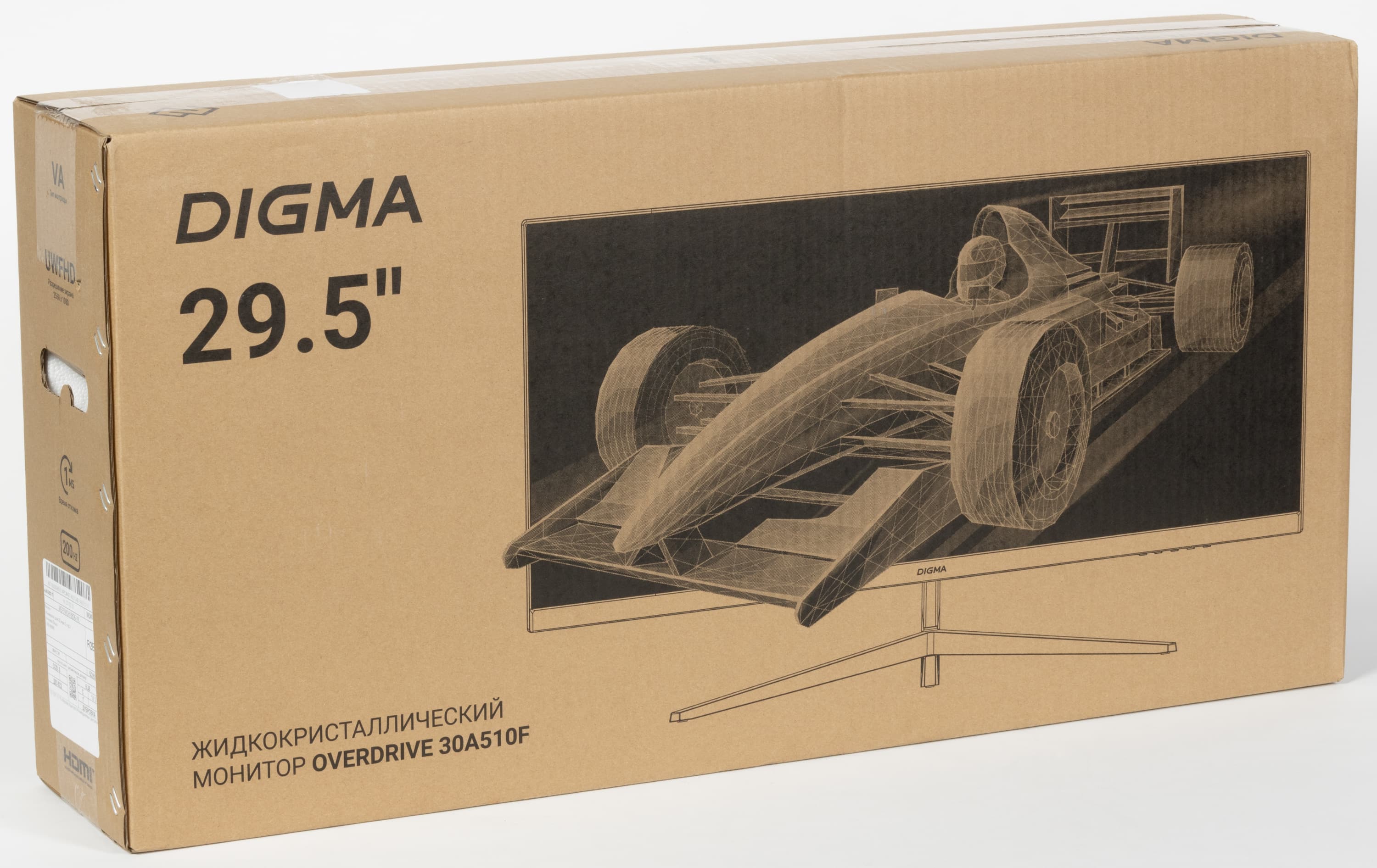Монитор нам достался упакованным в большую и скромно оформленную коробку из гофрированного картона с прорезными ручками по бокам. Внутри коробки для распределения и защиты содержимого используются пенопластовые формы и полиэтиленовые пакеты.