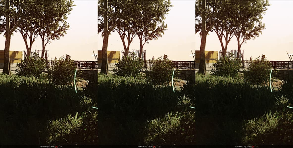 А форсированный из драйвера NIS масштабирует полностью готовую картинку на самой последней стадии, уже после всей игровой постобработки, и поэтому в теории возможно снижение качества масштабирования. Впрочем, для решения проблемы всегда можно отключить мешающие постэффекты в игровых настройках. Но чаще всего игры не используют мешающие постэффекты, да и игровой интерфейс после обработки выглядит нормально. Но чтобы полностью решить проблему, для этого типа масштабирования выпустили SDK, а исходные коды алгоритма открыты и опубликованы на GitHub, так что разработчики игр могут добавить его в свои движки уже в нужной стадии конвейера.
