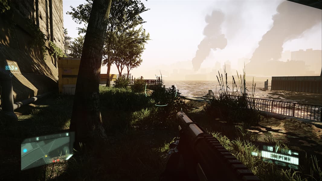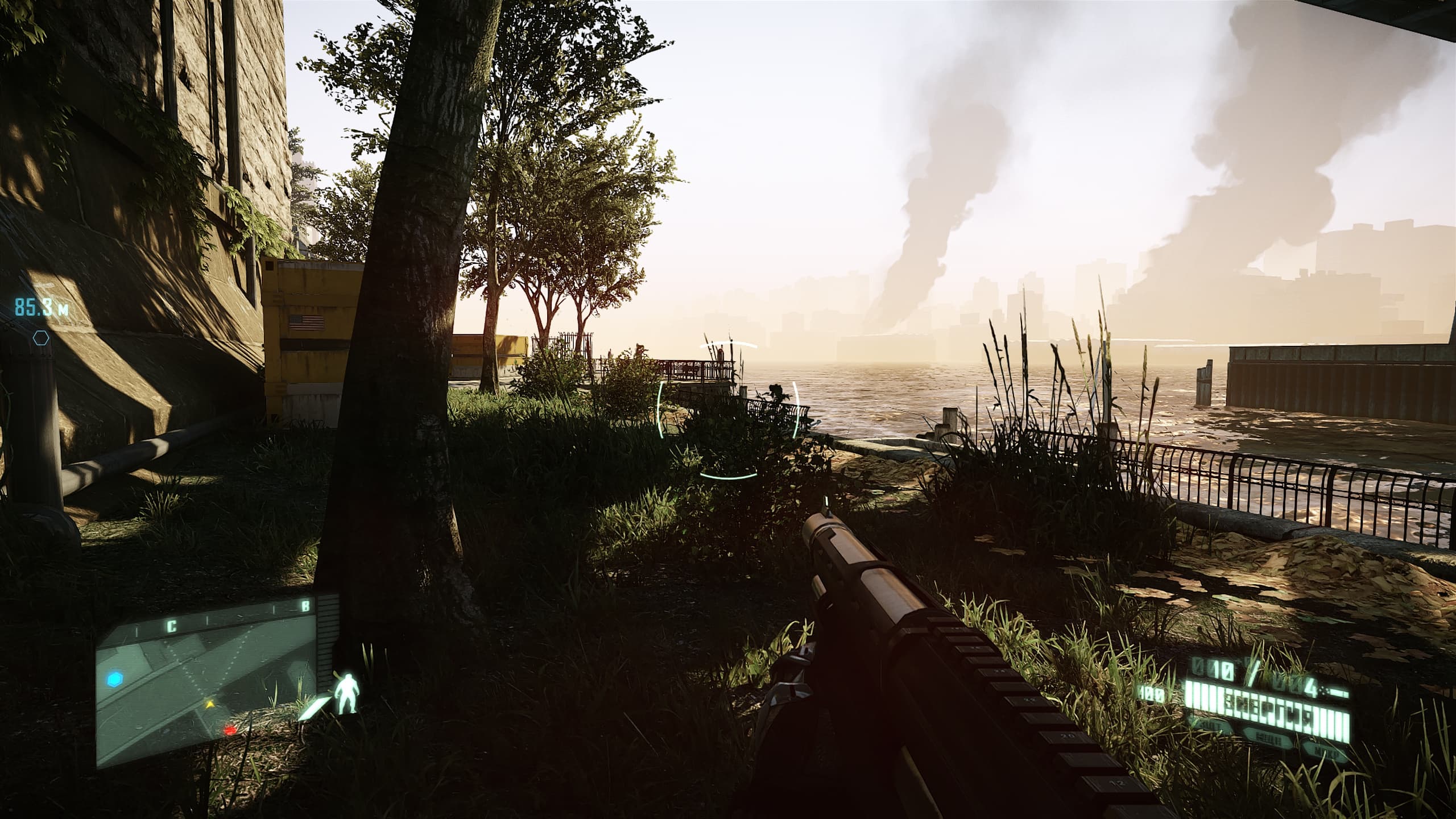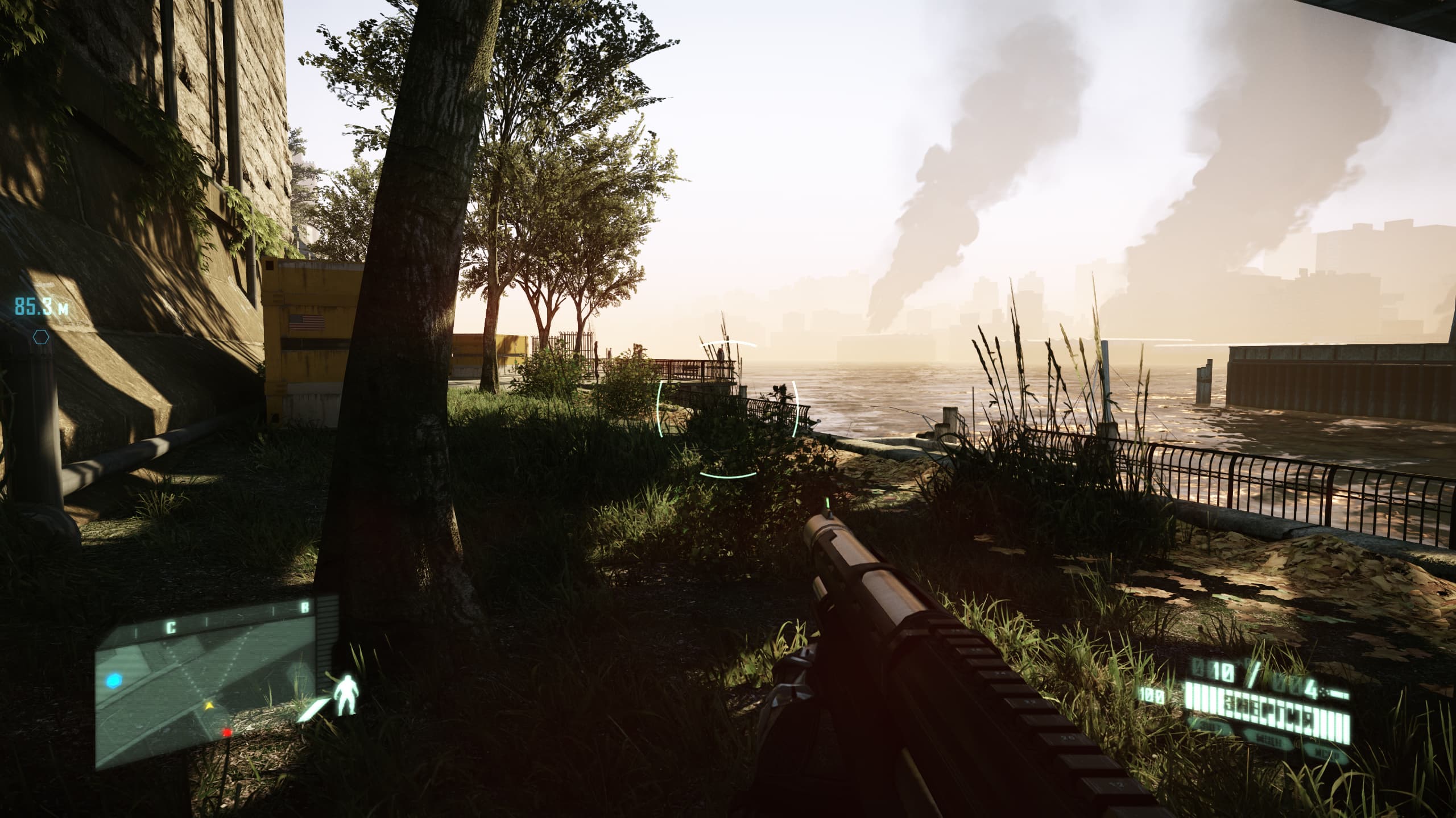 Хорошо, с DLSS и FSR более-менее понятно, а что с FSR против NIS? Мы дополнительно проверили качество изображения при масштабировании всеми доступными методами в ремастере игры Crysis 2, которая имеет поддержку DLSS, а NIS можно форсировать из драйверов. Техника AMD FSR была добавлена в игру при помощи утилиты Magpie, текстурные уровни детализации (texture LOD bias) отодвинуты подальше от камеры, как рекомендует компания AMD при использовании FSR. В результате должен получиться почти полный эквивалент «настоящего» AMD FSR, хотя это и не точно.