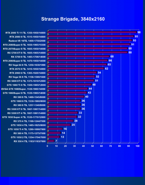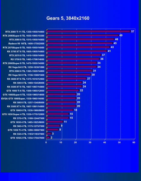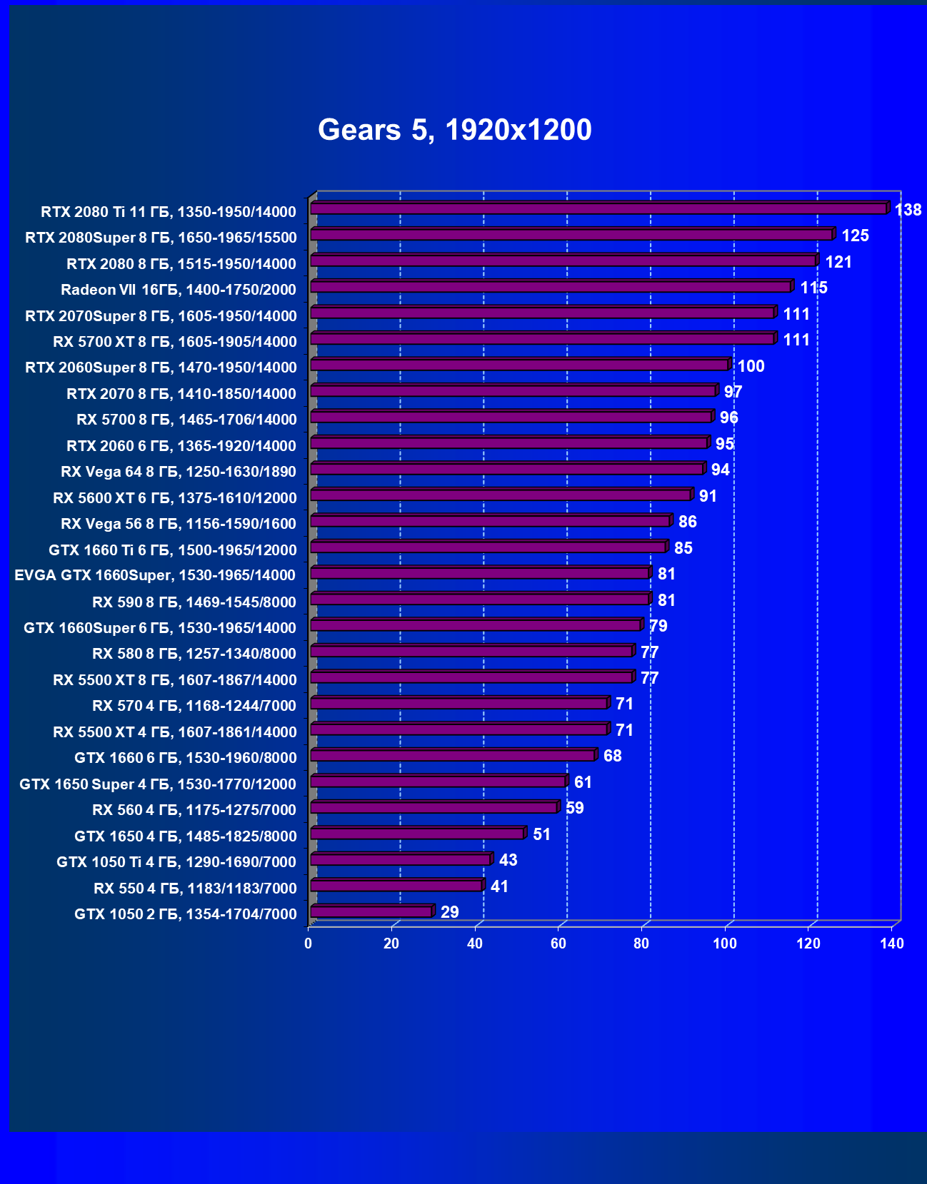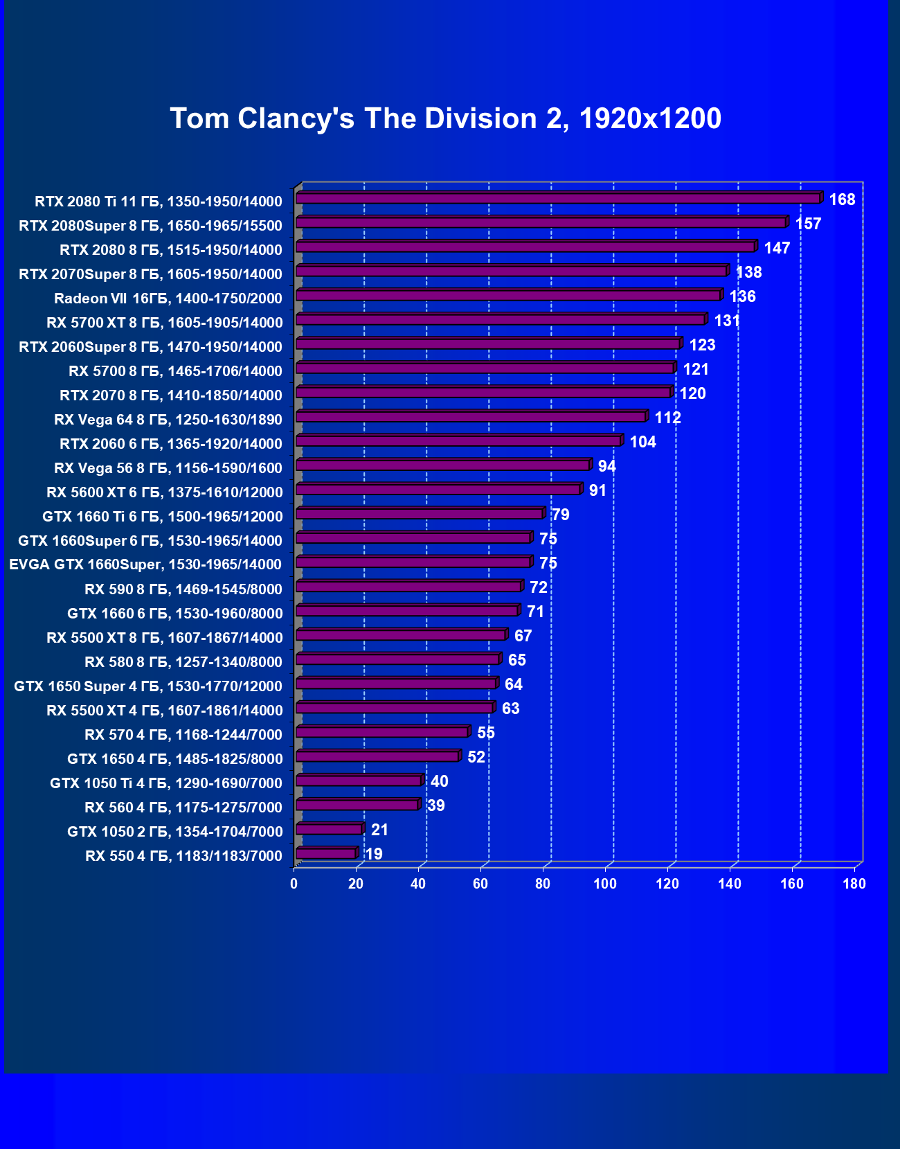 | 12 | RX 5500 XT 8 ГБ, 1607—1867/14000 | 388 | 570 | 14 700 |
