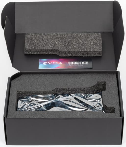 Как во многих СО топового уровня, основным элементом является сдвоенный пластинчатый радиатор, покрытый никелем. Обе части радиатора имеют много тонких ребер, которые пронизаны несколькими тепловыми трубками. Микросхемы памяти через термоинтерфейс охлаждаются специальной пластиной, прикрученной к радиатору. А силовые элементы имеют свою подошву охлаждения на второй части радиатора.