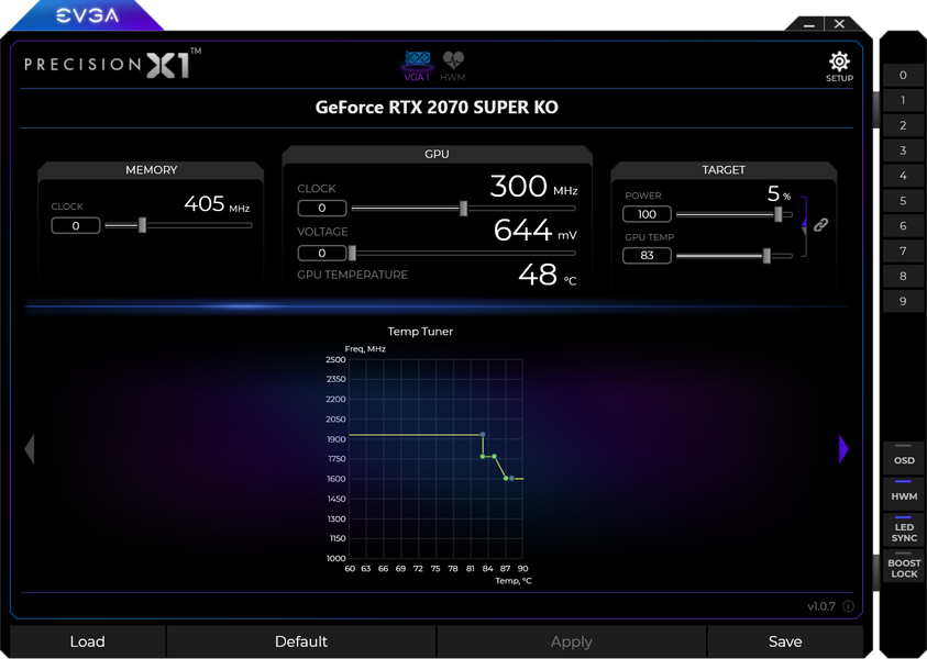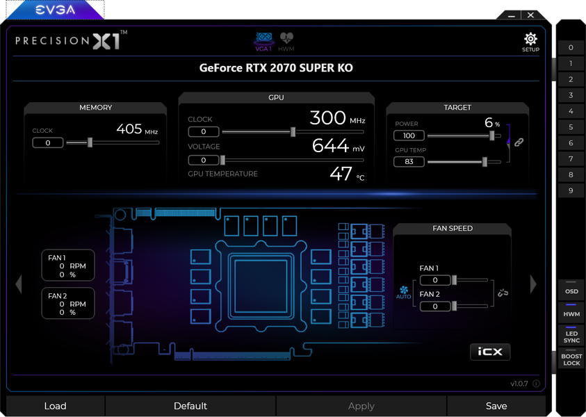 Управление работой карты обеспечивается с помощью фирменной утилиты EVGA Precision X1.